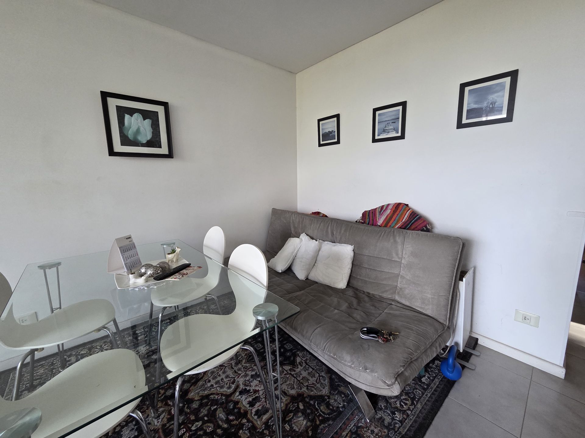 Departamento de dos ambientes ubicado en el quinto piso de un edificio en la zona más destacada de San Fernando. El inmueble cuenta con una distribución funcional que incluye una amplia sala-comedor, una cocina con lavadero incorporado y barra desayunadora, y un baño completo con bañera. El dormitorio dispone de un placard nuevo y una ventana con vista panorámica.