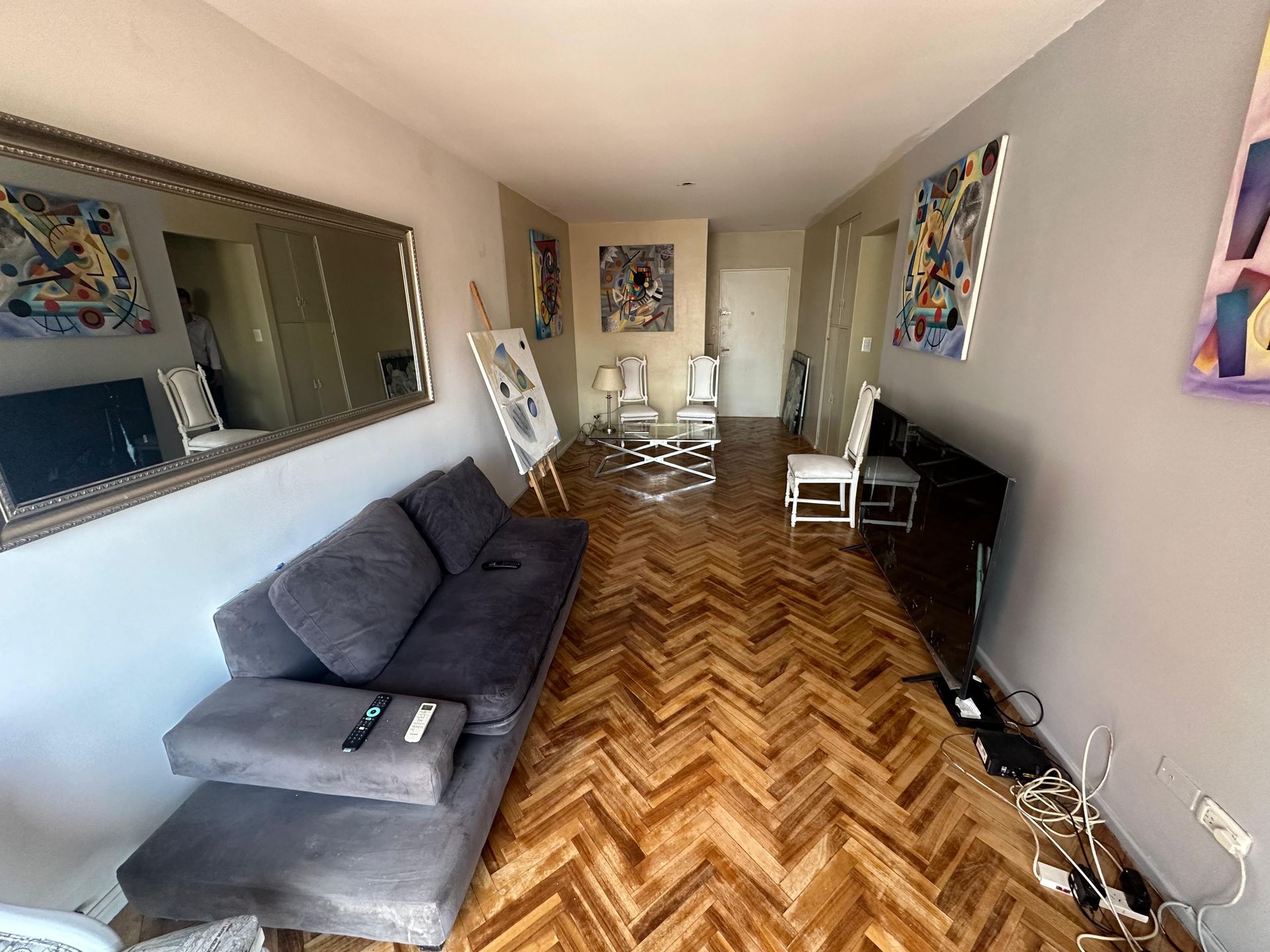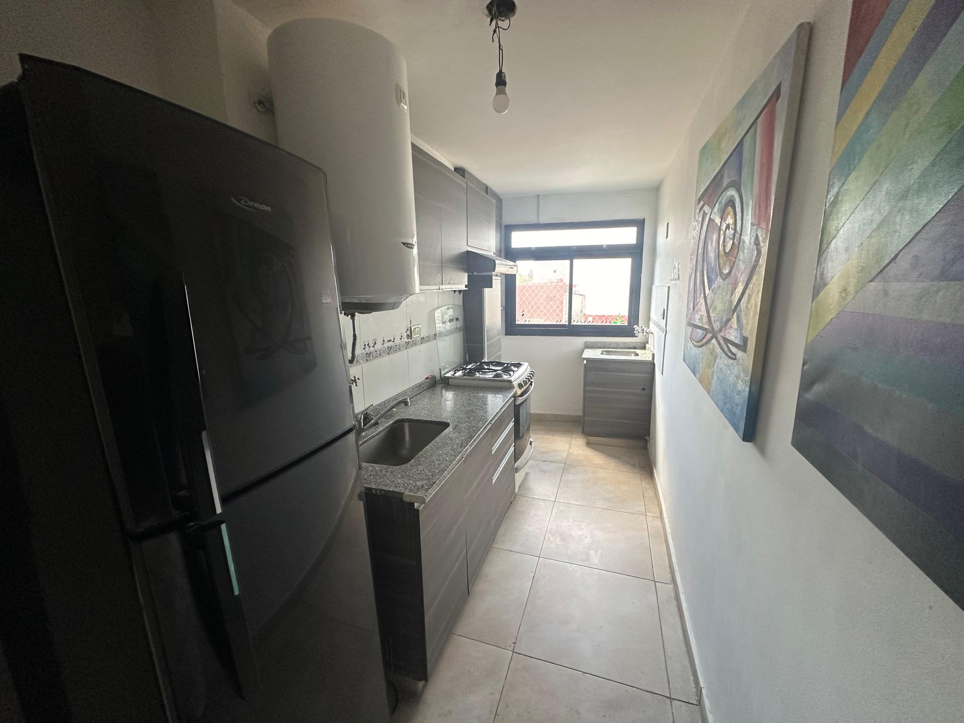 El amplio living comedor, con pisos de parquet y salida a un balcón corrido, ofrece luminosidad y amplitud, ideal para momentos de relax y entretenimiento. El dormitorio, igualmente espacioso, cuenta con un placard integrado. La cocina independiente, con lavadero, ha sido remodelada con acabados modernos que facilitan la preparación de comidas. El baño completo, también renovado, presenta un diseño contemporáneo y funcional. Esta propiedad representa una excelente oportunidad tanto para disfrutar como para invertir en un entorno privilegiado.