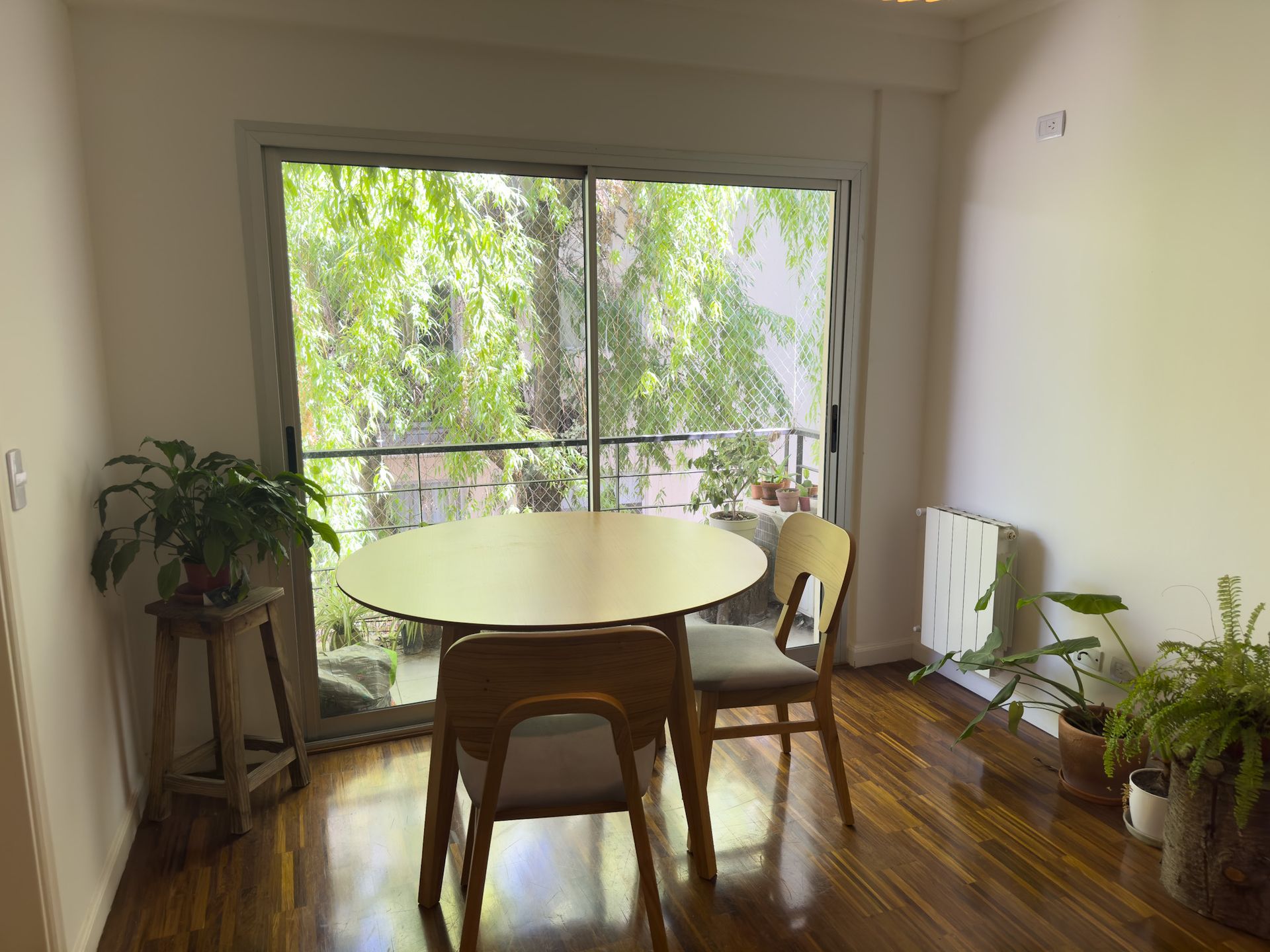 La distribución del inmueble es excelente y bien definida. La cocina está separada, ofreciendo un espacio funcional y práctico. El living comedor es cómodo y muy luminoso, con salida directa al balcón que brinda vistas verdes y una sensación de amplitud y serenidad. La habitación principal es amplia y cuenta con un placard de piso a techo, proporcionando una gran capacidad de guardado. El baño completo se encuentra en muy buen estado y complementa la comodidad del espacio.
