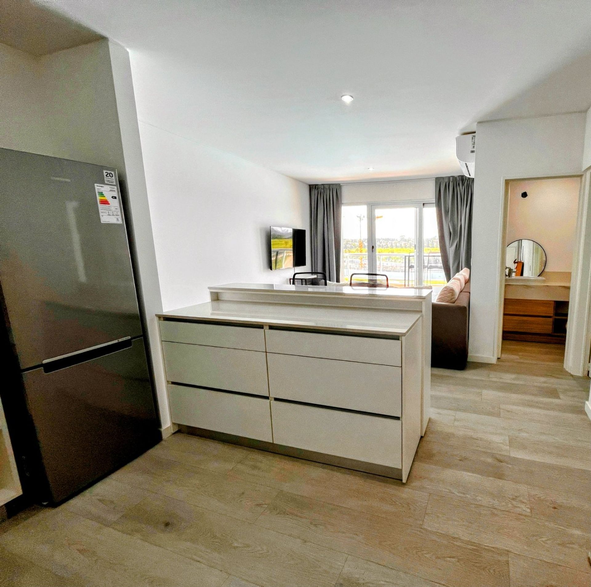 2 ambientes con 2 baños completos, todos con vistas a la laguna. La cocina cuenta con barra desayunadora y se abre a un amplio balcón que ofrece panorámicas ininterrumpidas del agua. El dormitorio principal es un suite con baño propio, bañera y vestidor amplio, también con vista a la laguna. Se incluye toilette adicional, cochera en primer subsuelo y baulera para mayor comodidad.