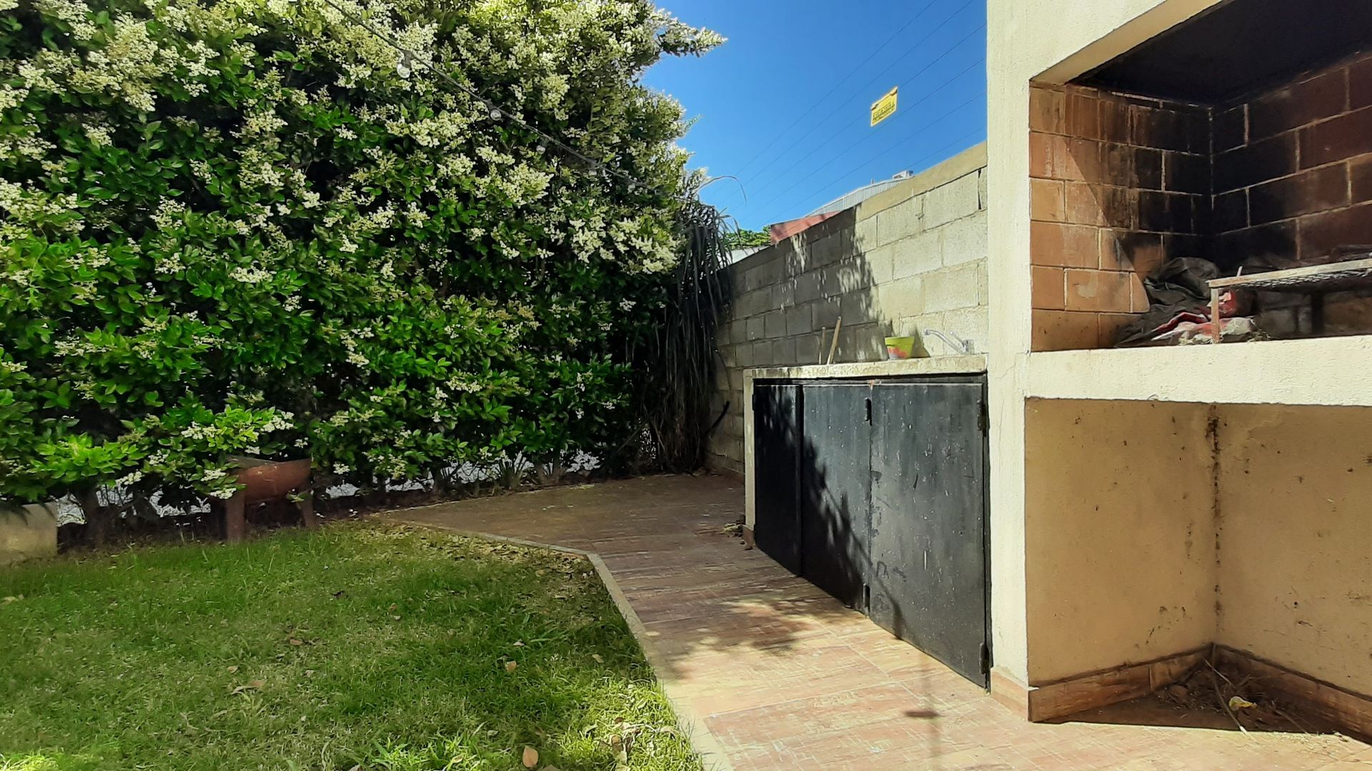 Planta baja: semi cubierto de acceso, cochera descubierta para un vehículo, toilette de recepción con mesada de mármol, espejo y ventana de ventilación natural. Cocina semi-integrada con barra desayunador, mueble bajomesada en melamina, estantes sobre la mesada y cocina eléctrica, junto a un ventanal frontal. Estar-comedor amplio con gran puertaventana que conduce a la expansión. Jardín privado con vegetación, parrilla individual, mesada con pileta y conexión para lavarropas, y puerta de acceso directo desde el exterior.