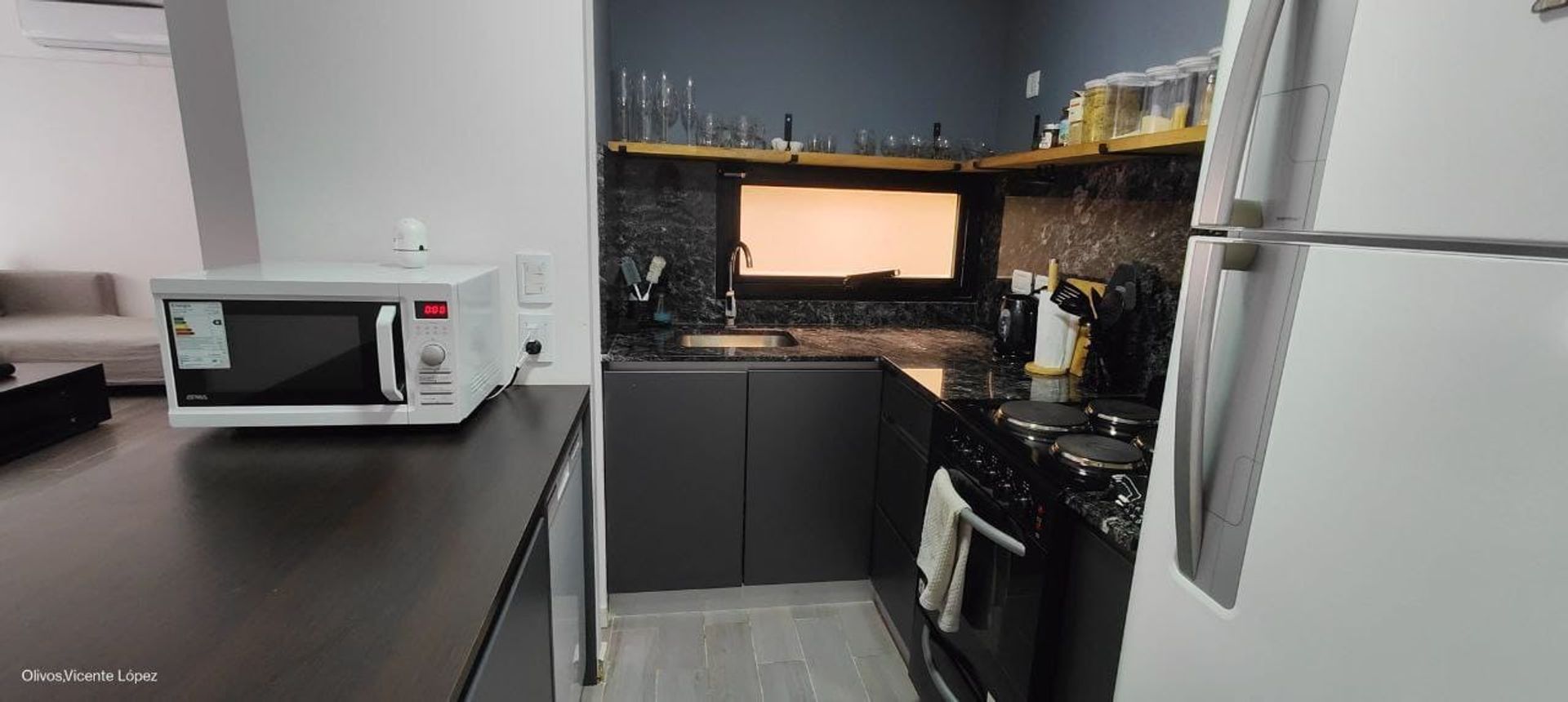 El interior se distribuye en una amplia zona de living y comedor con ventanales orientados al este, una cocina semi integrada equipada con electrodomésticos de última generación y un baño completo con bañera y ventilación natural.