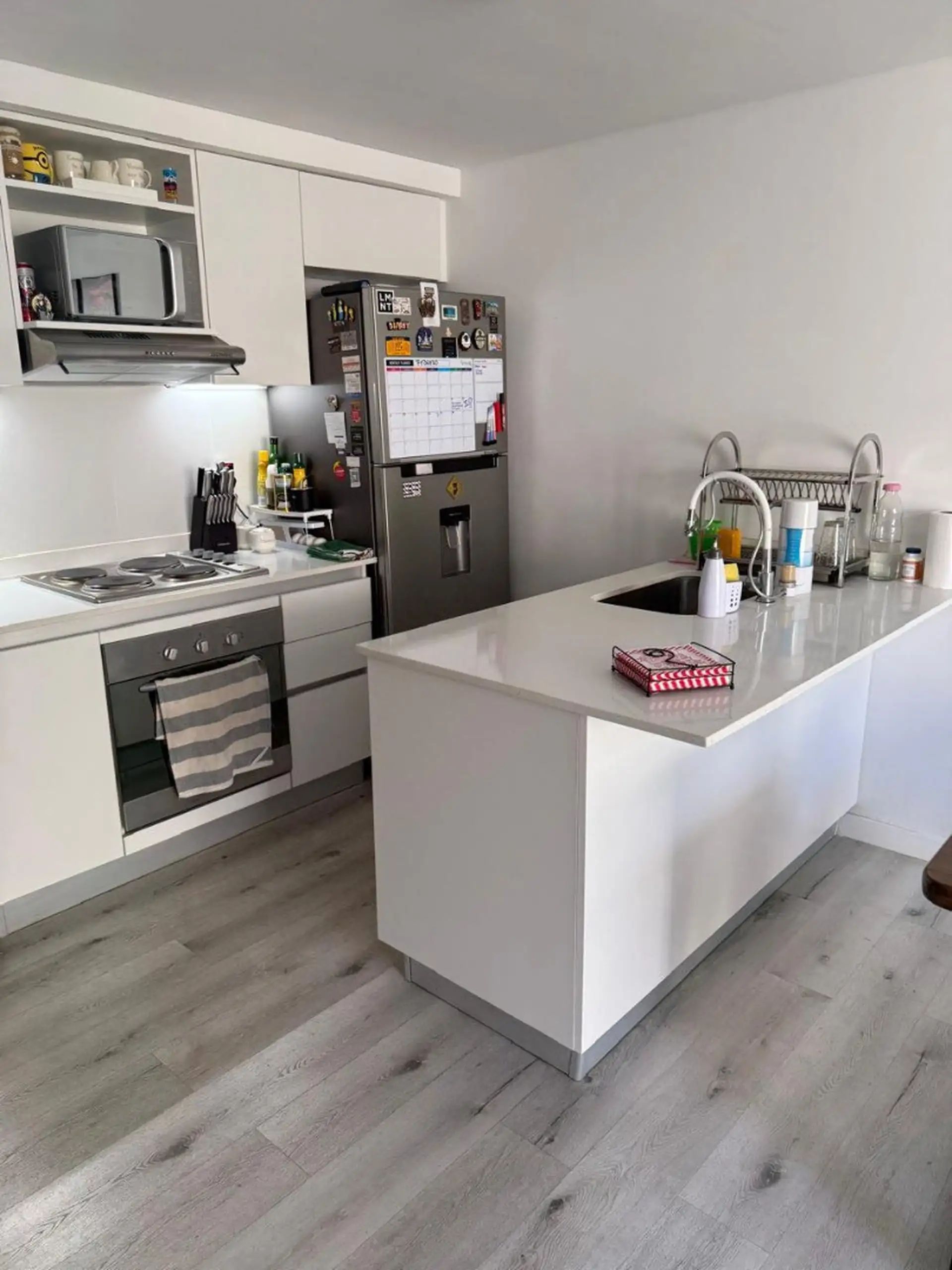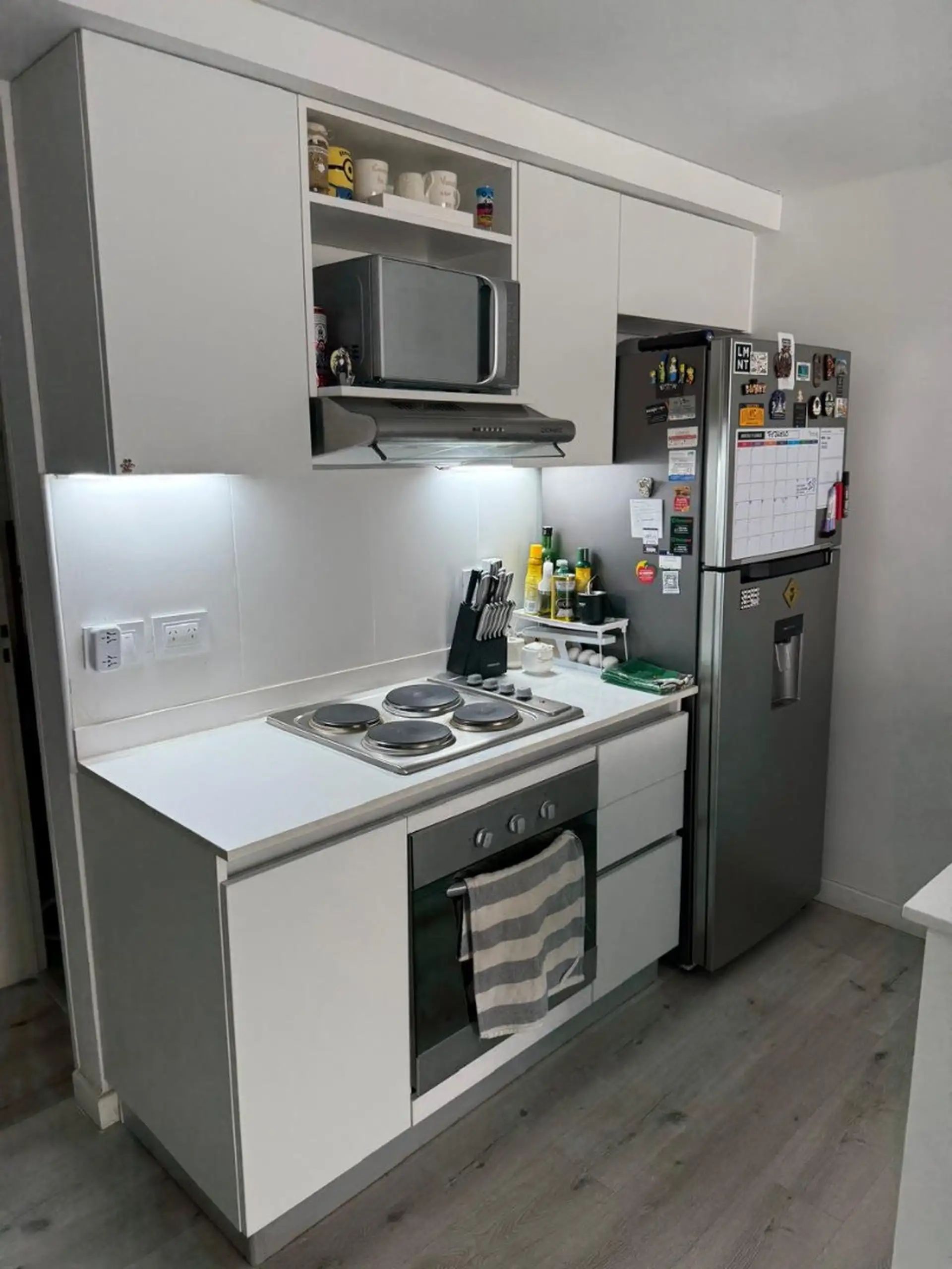 Desde el living-comedor se accede a un jardín privado que invita a disfrutar del aire libre. El espacio incluye una gran mesada y conexión para lavarropa, brindando practicidad y comodidad.