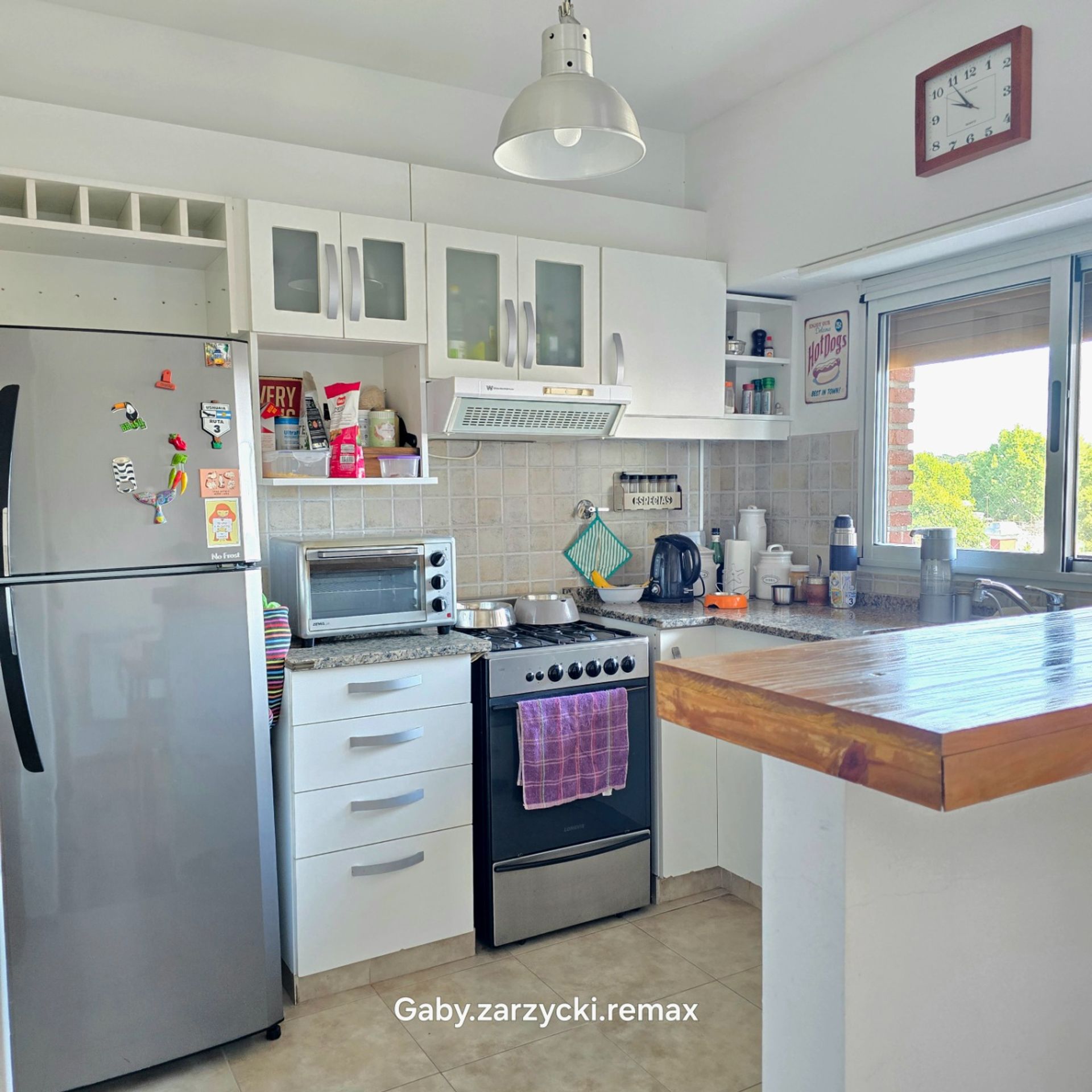En la planta baja se encuentra un dormitorio, una cocina equipada con alacena y bajo mesada, y un baño completo con bañera de hidromasaje. El balcón corrido ofrece un espacio al aire libre ideal para disfrutar de la vista y la brisa.