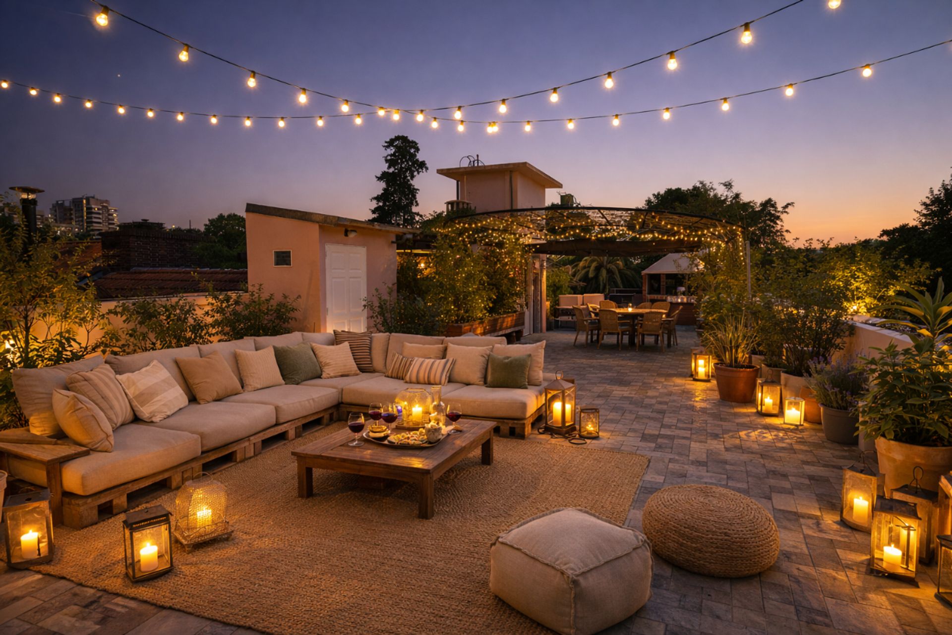 La terraza de 120 m² es un oasis al aire libre, equipada con parrilla y dos cuartitos que actualmente funcionan como cocina y espacio de guardado. Ambos cuartitos ofrecen un gran potencial para transformarse en baños, áreas de parrilla adicionales u otros usos según el gusto del propietario.