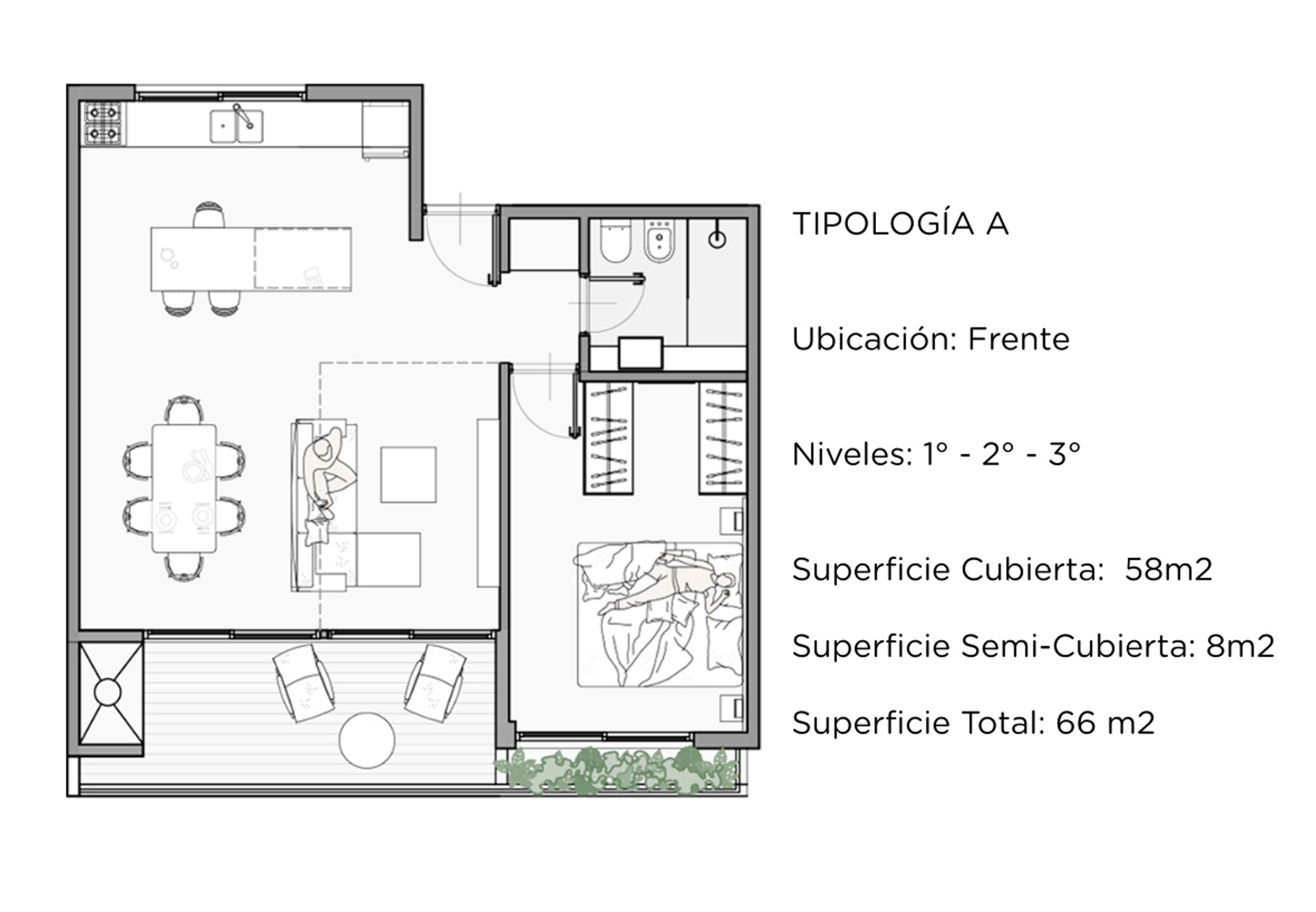 El proyecto, con un total de 66 m², se distingue por su diseño contemporáneo y calidad arquitectónica. Con solo cinco unidades, garantiza exclusividad y un entorno residencial sereno. Todos los espacios están pensados para maximizar la luminosidad natural y la conexión interior‑exterior, con materiales nobles y terminaciones de alto estándar.