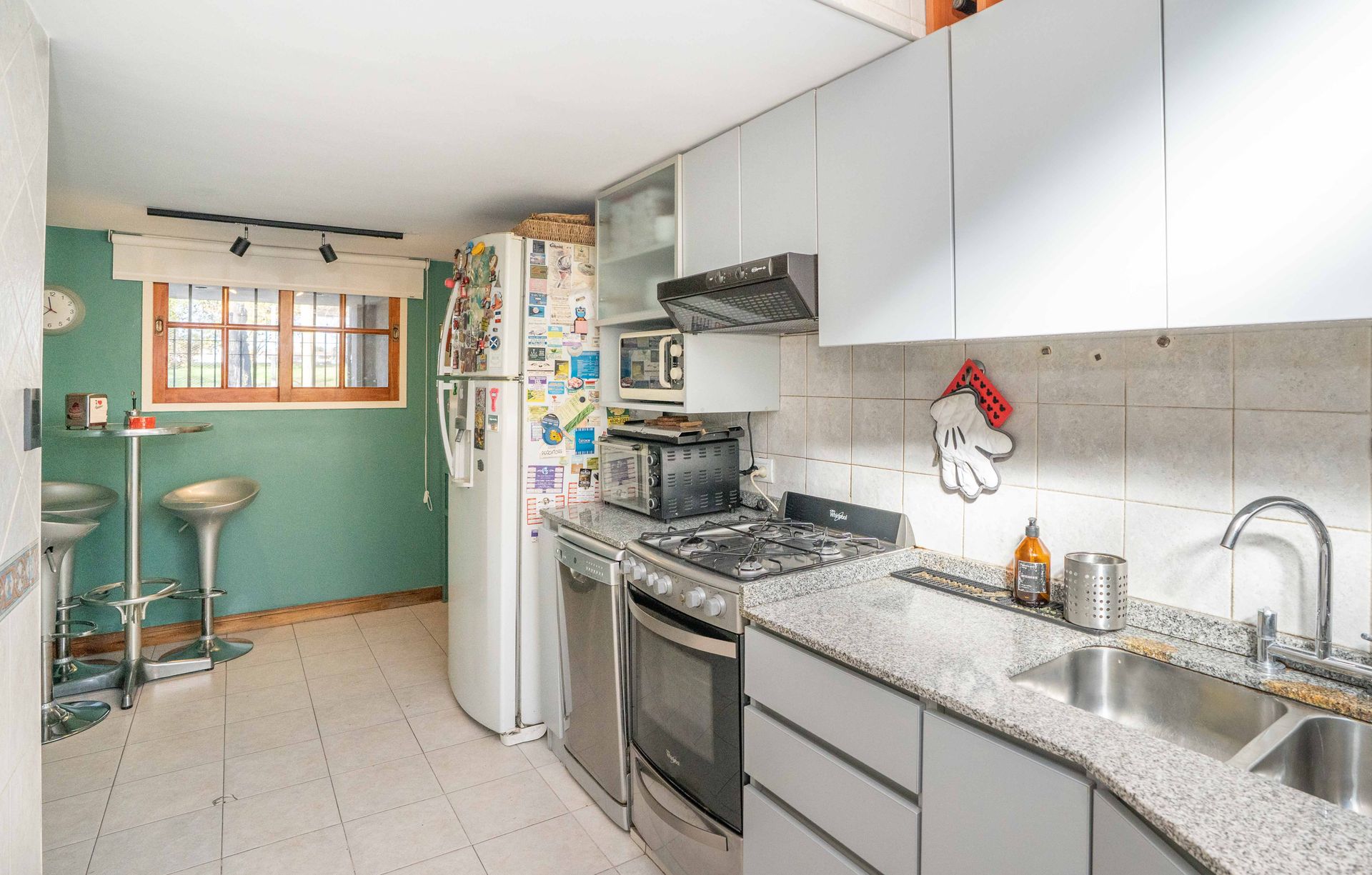 El exterior de la propiedad cuenta con un acogedor patio con parrilla, perfecto para encuentros al aire libre, y un lavadero independiente que aporta practicidad a la vida diaria. La cochera propia, con acceso directo, completa las comodidades de esta vivienda.