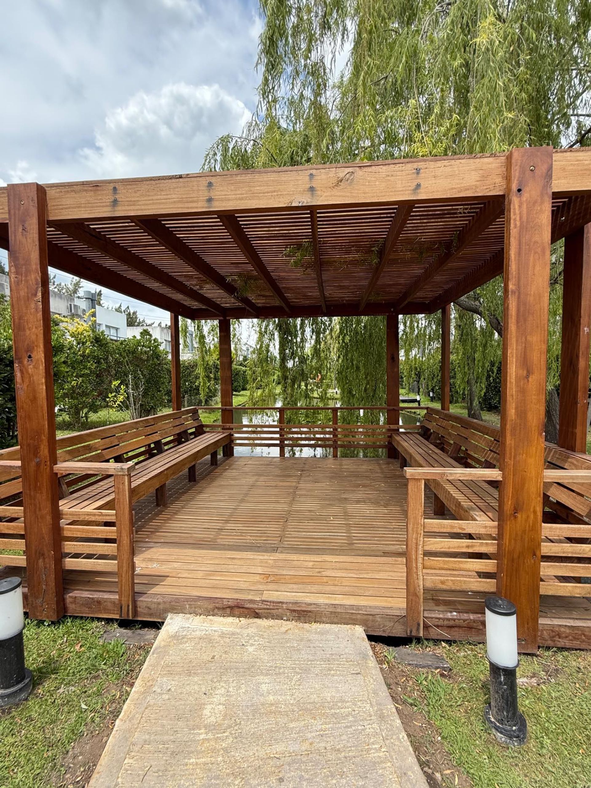 El exterior cuenta con una galería equipada con parrilla, bajo parrilla y lugar de guardado, así como un jardín parquizado que conduce al muelle y al lago, creando un entorno natural y sereno.