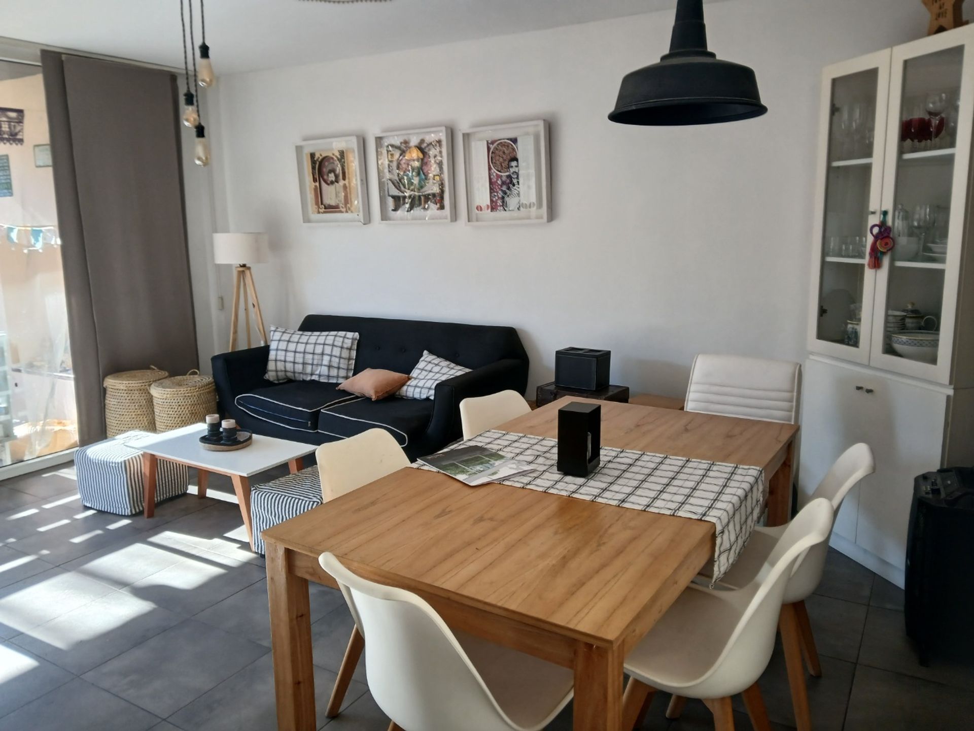 Departamento de dos plantas ubicado en el complejo San Isidro Central, en el barrio La Calabría. La entrada conduce a un amplio living comedor, ideal para reuniones familiares y sociales. La cocina, con apertura y barra desayunadora, ofrece un espacio funcional y luminoso para la preparación de alimentos. Dos dormitorios están distribuidos en la planta principal, con el dormitorio principal en suite y un segundo baño completo. En el subsuelo se encuentran dos dormitorios adicionales que comparten un baño con ducha, proporcionando privacidad y comodidad para la familia o invitados.