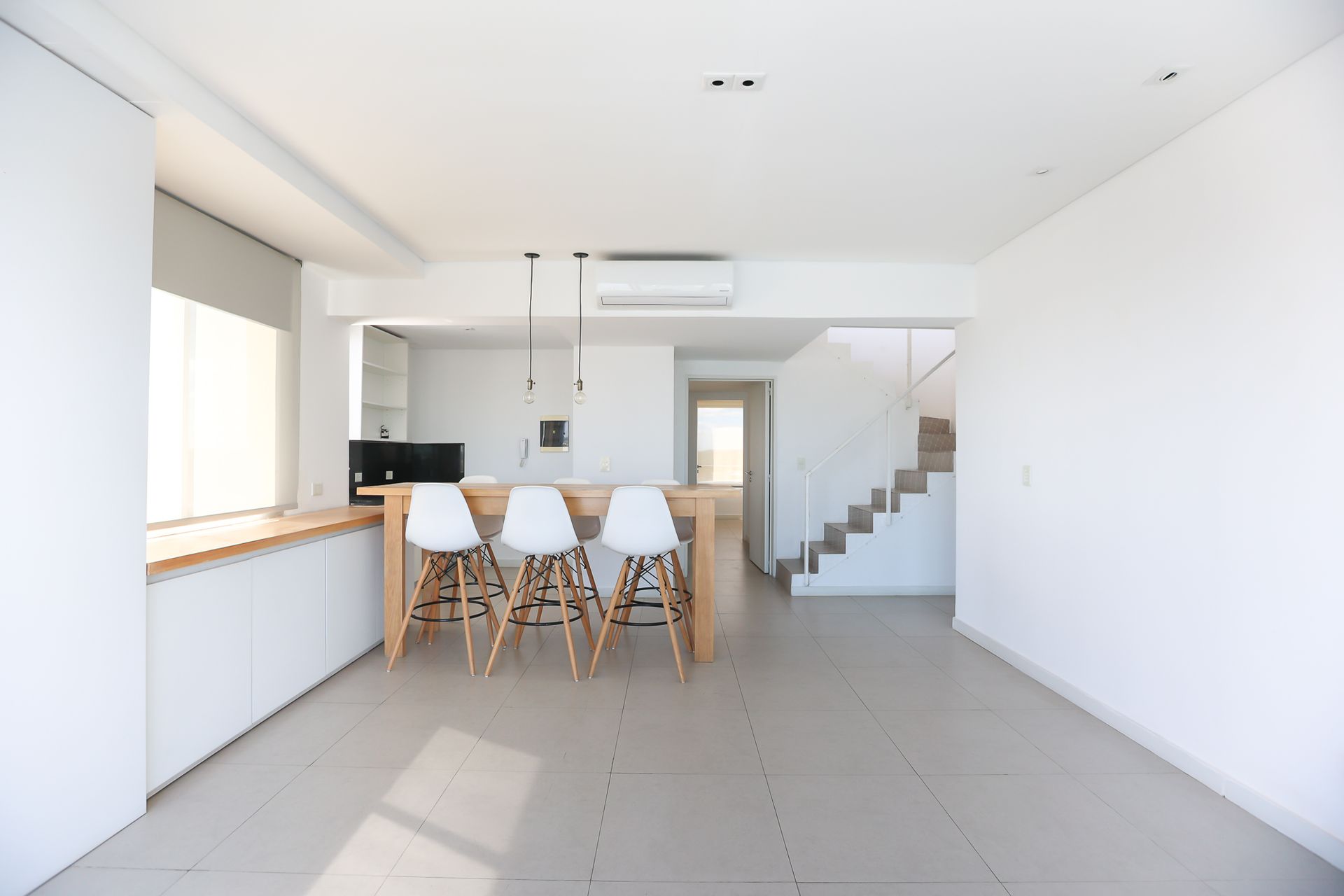 El amplio living, con balcón y vista al lago, invita a disfrutar de momentos de tranquilidad. La cocina semi-integrada, amueblada con muebles altos y bajos y mesada de gran calidad, se abre al comedor, creando un ambiente funcional y acogedor. Todos los ambientes cuentan con aire acondicionado y calefacción por piso radiante, garantizando comodidad en cualquier estación del año.