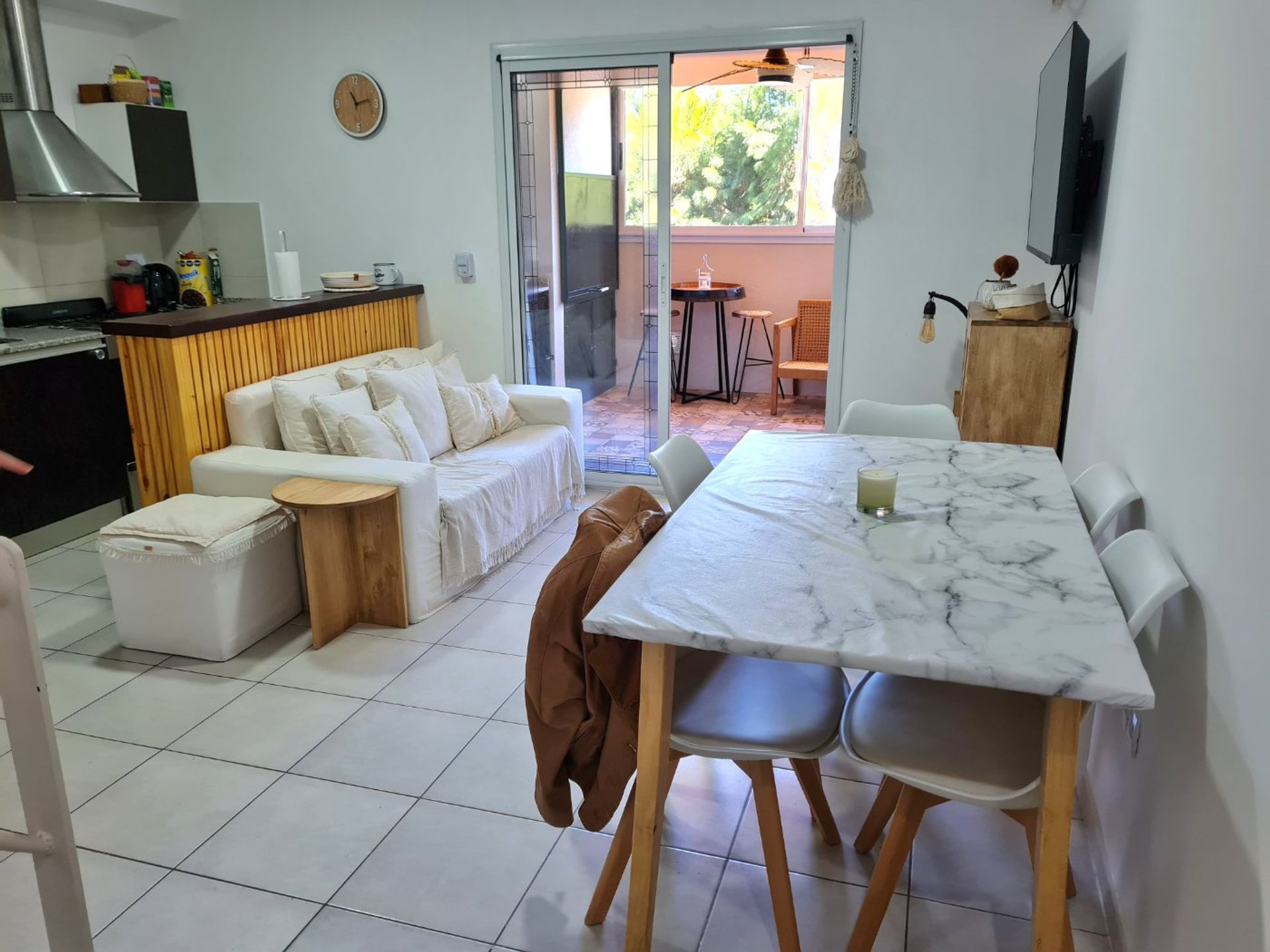 La vivienda ha sido completamente refaccionada hace un año, con acabados de excelente nivel y un diseño que destaca por su buen gusto. Al ingresar se abre a un amplio living comedor, donde los pisos de porcelanato realzan la luminosidad y el espacio. La cocina, integrada al salón en concepto abierto, cuenta con muebles de simil madera y una mesada de granito, equipados con electrodomésticos de la marca Longvie y un extractor TST de acero. El aire acondicionado YORK, con funciones de frío y calor, garantiza confort durante todo el año.
