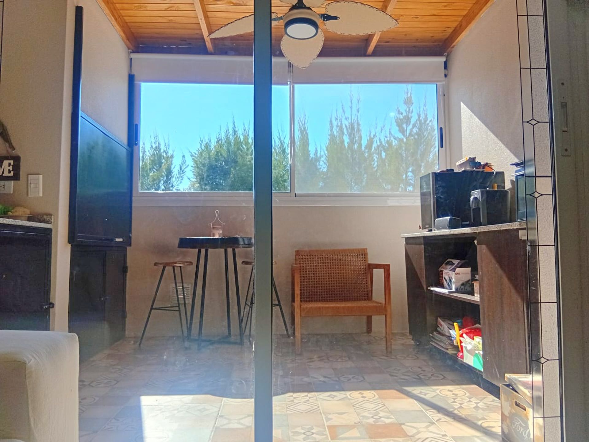 Desde el interior se accede a una terraza techada con paneles de madera y aislante, creando un ambiente fresco y confortable. Los cerramientos son de gran calidad, y el piso vintage aporta un toque de elegancia. En el área de servicio se encuentra un segundo living o quincho, con una parrilla de alto tiraje y ventilador de techo, ideal para reuniones al aire libre. El lavadero dispone de espacio para lavarropa y descarga, junto con un termotanque Señorial para el agua caliente.