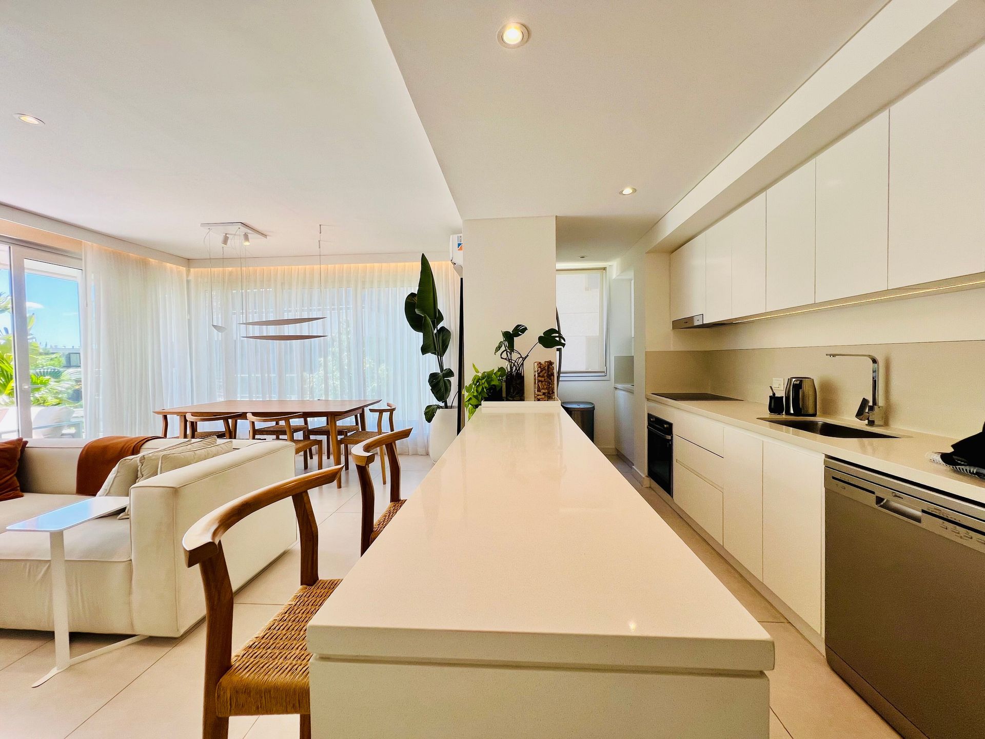 En la planta principal se encuentra un amplio living comedor que se abre a un balcón terraza equipado con parrilla, ideal para disfrutar del clima mediterráneo de la zona. La cocina, moderna y luminosa, dispone de generosos espacios de almacenamiento y una isla/barra que conecta con el salón, creando un ambiente de convivencia. Un toilette de recepción complementa la zona social, mientras que dos dormitorios amplios y un baño completo proporcionan confort y privacidad.