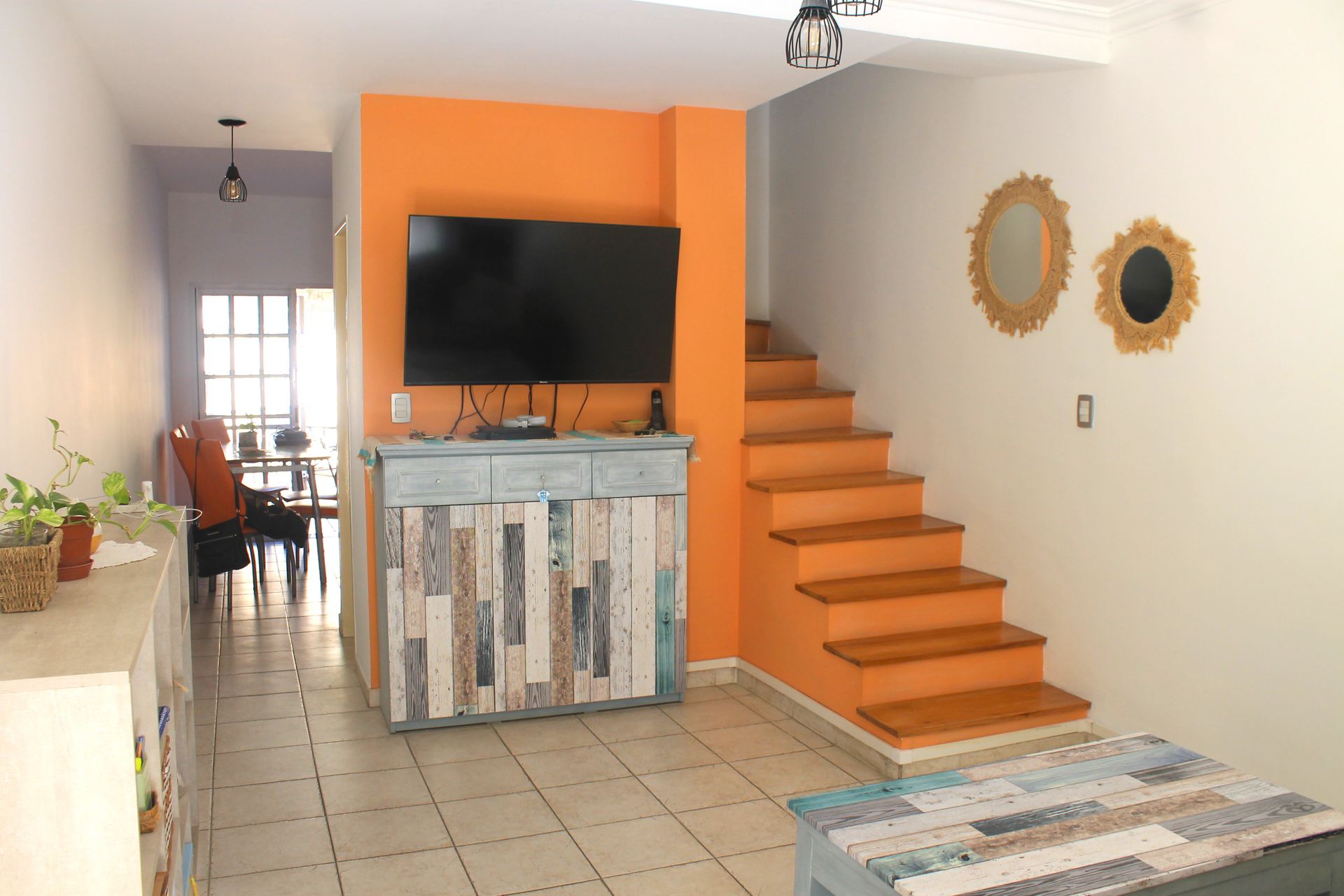 La planta baja combina un amplio living con acceso a un patio privado, una cocina funcional con comedor diario, un lavadero y un toilette, creando un espacio de vida cómodo y práctico.