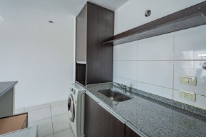 El amplio y luminoso espacio combina living, comedor y cocina en una distribución fluida, creando un ambiente acogedor y funcional. Un balcón privado permite disfrutar de momentos al aire libre en la tranquilidad del barrio. El baño completo, con acabados de calidad, brinda comodidad y practicidad.