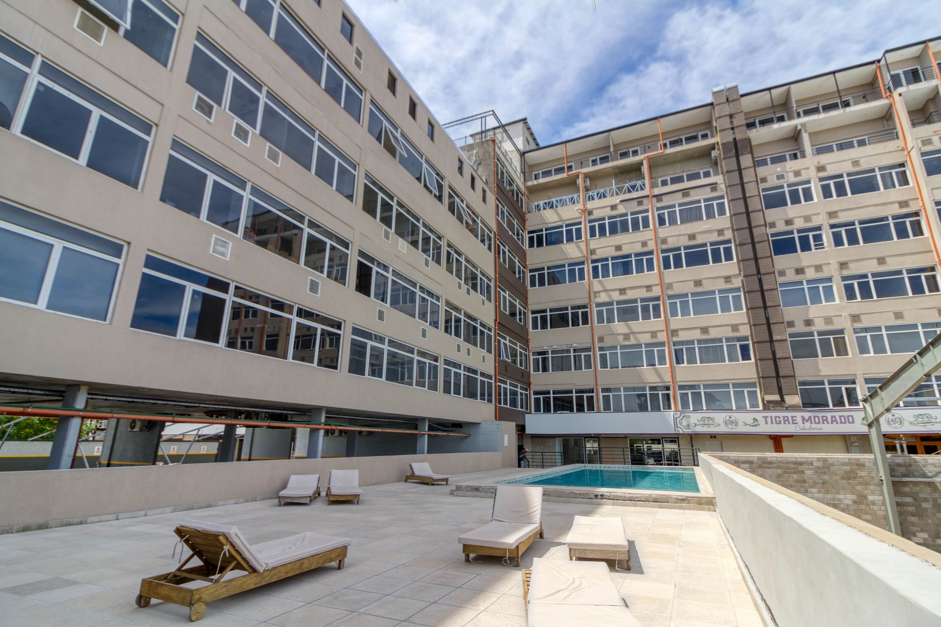 El edificio tiene un perfil corporativo consolidado, con acceso controlado y seguridad. El entorno profesional favorece cualquier actividad. Entre las amenidades del complejo se incluyen gimnasio, sky bar, rooftop y confitería con sector parrillas, pileta, plaza, lavandería, lavadero de autos y valet parking.