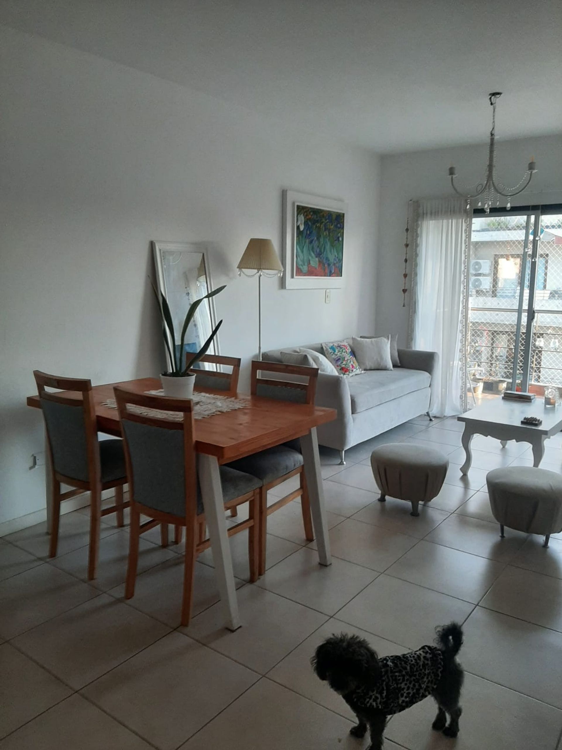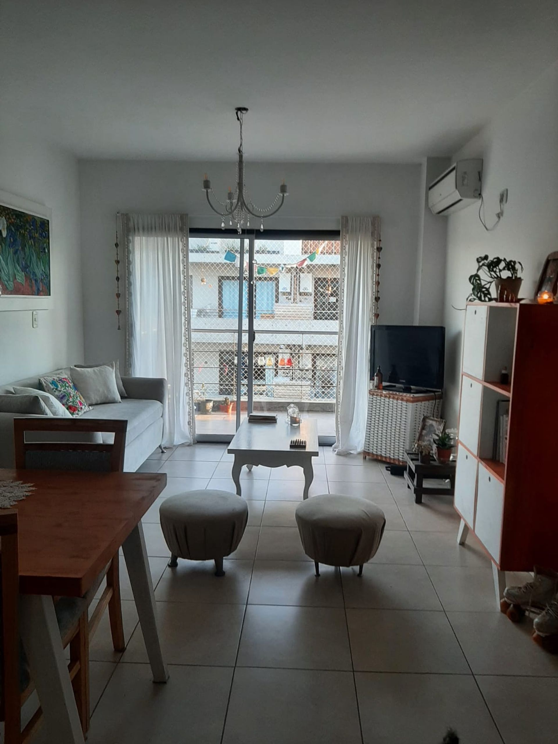 La cocina, en excelente estado, cuenta con mesada de granito, muebles de guardado y espacio para una pequeña mesa de desayuno. El baño funcional dispone de inodoro y ducha, con ventilación natural por ventana hacia la calle. El edificio ofrece una terraza compartida con áreas individuales para tender ropa y zona de parrilla, añadiendo valor a la propiedad.