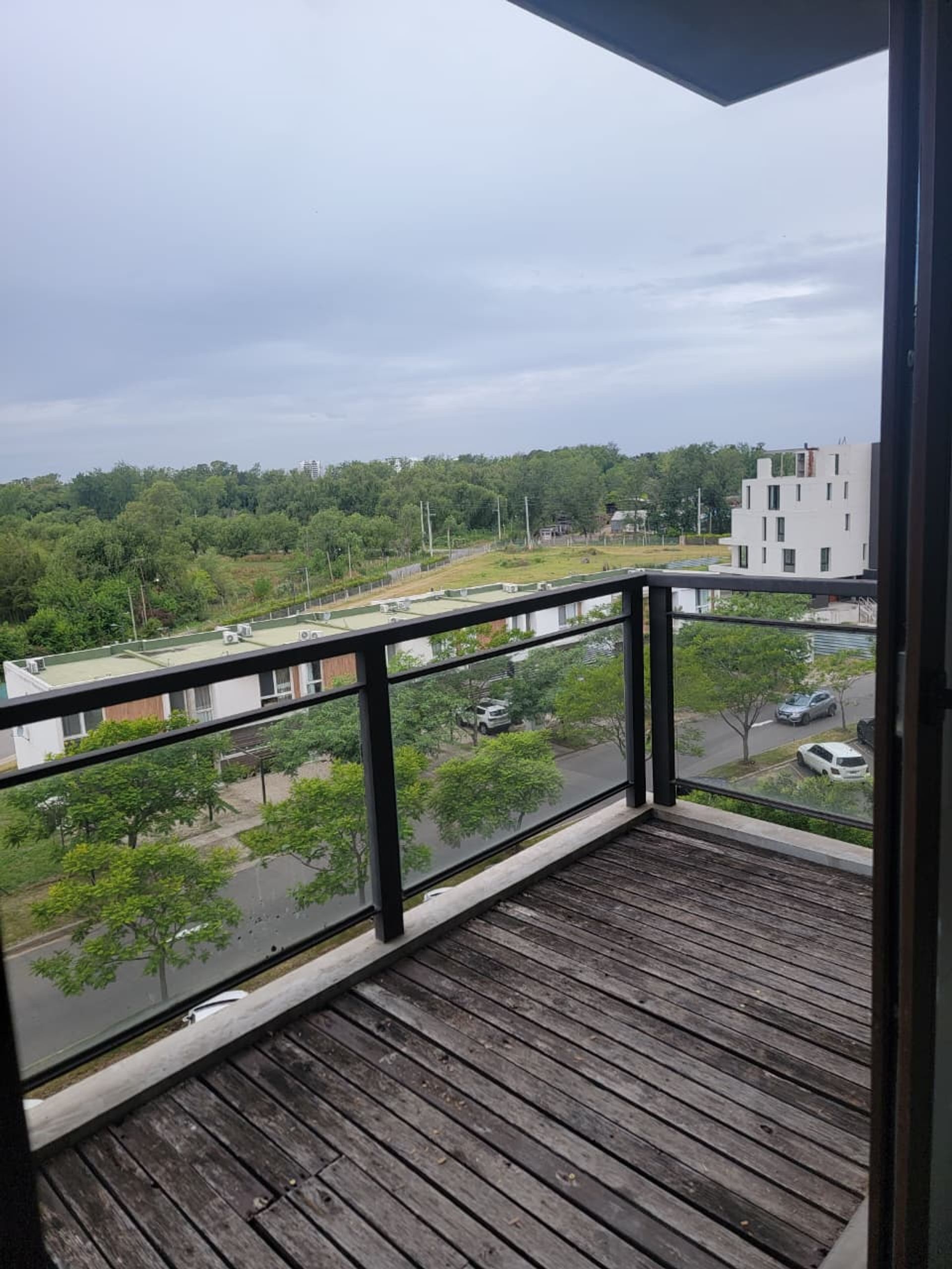 Cuenta con una cocina integrada totalmente equipada, con muebles altos y bajos y mesada. El ambiente principal es amplio y cuenta con un balcon que ofrece una vista verde al Boat Center. El baño completo incluye bañera. Además dispone de cochera cubierta en subsuelo y baulera para mayor comodidad.