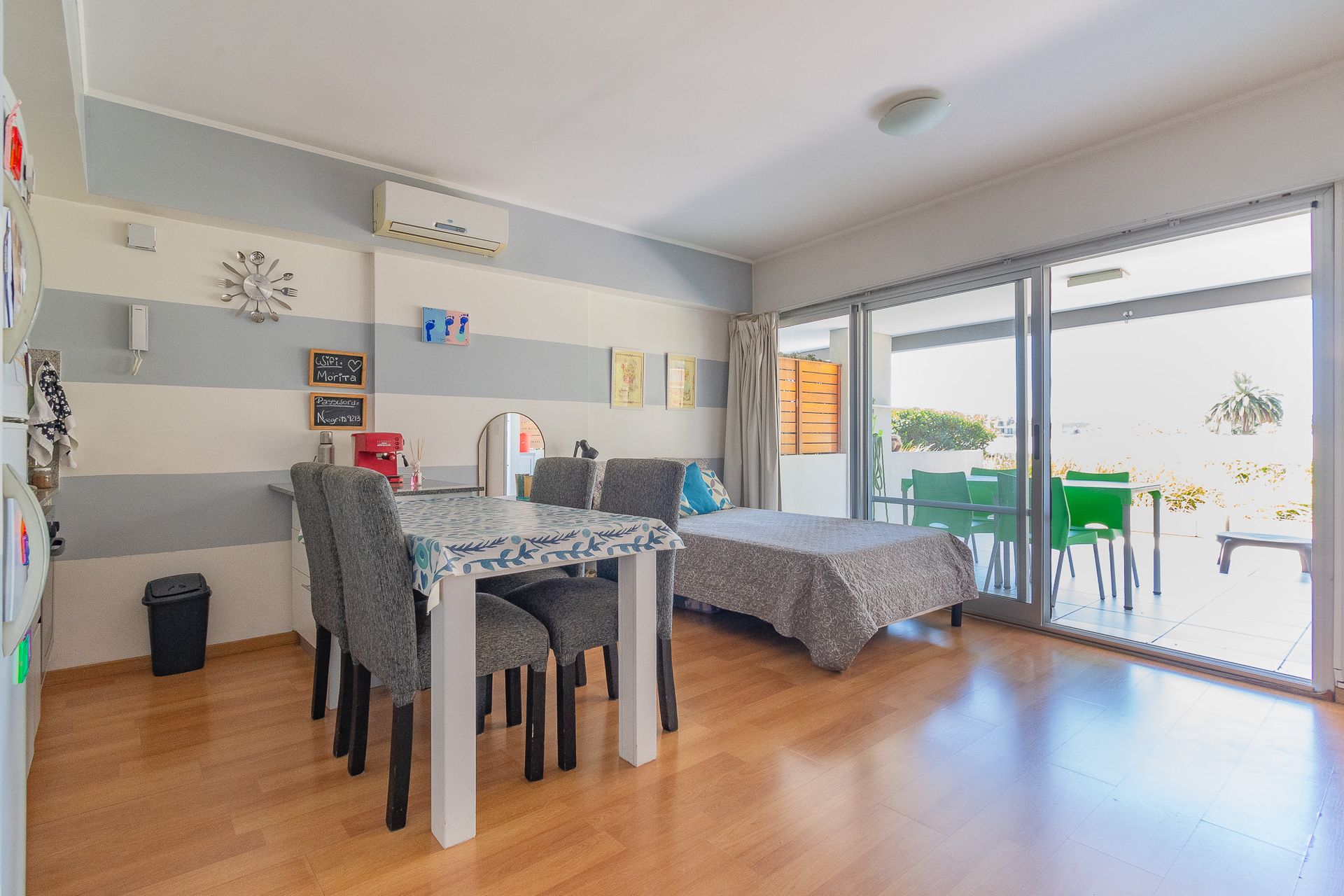 El patio/balcón generoso se convierte en un refugio de aire, luz y verde, aportando un diferencial esencial para el día a día. El ambiente incluye un placard de recepción y un baño completo con bañera, mientras que el sistema de aire acondicionado tipo split y la losa radiante garantizan confort en todas las estaciones.