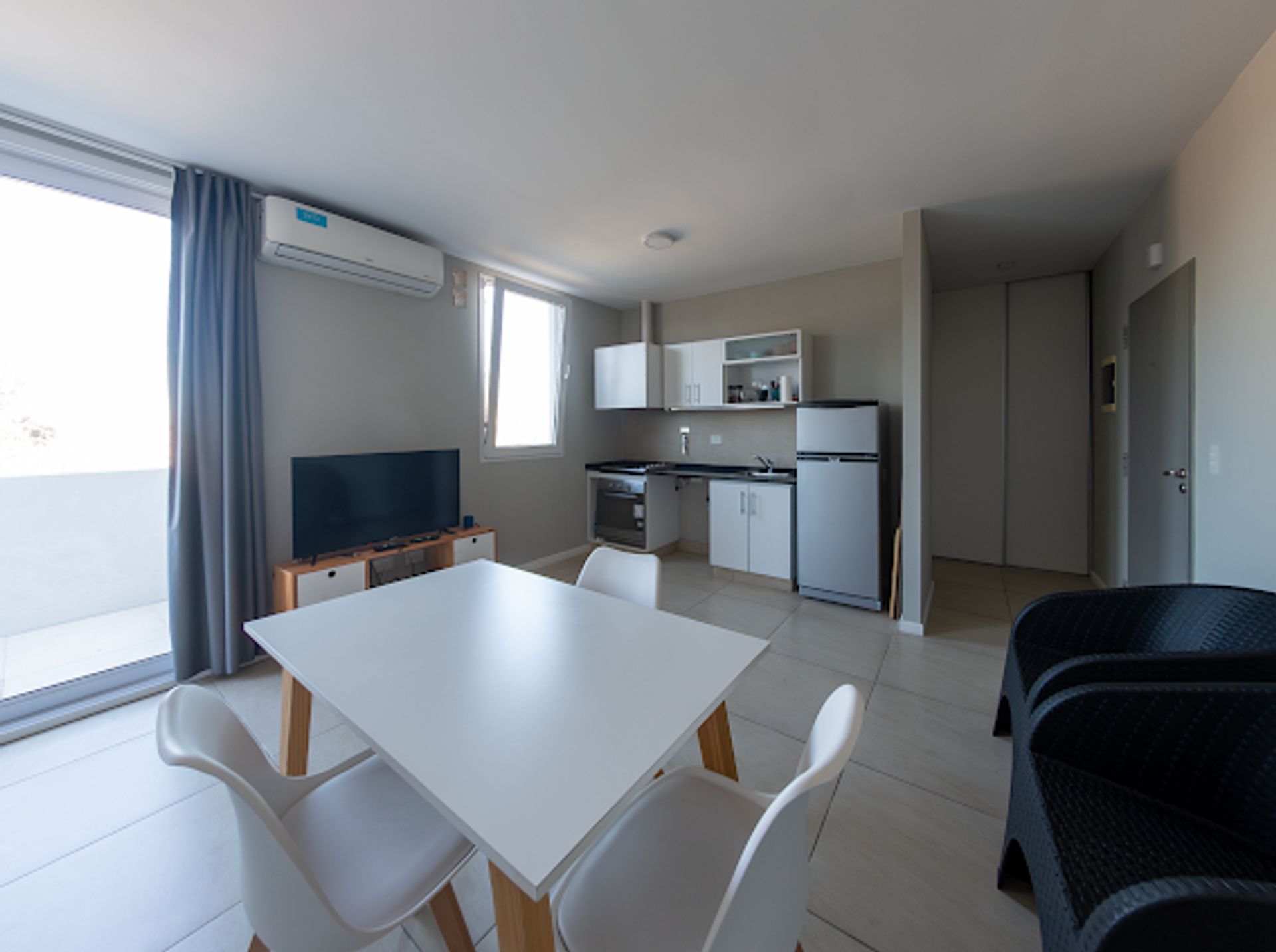 Monoambiente con balcón terraza y parrilla, diseñado para brindar una experiencia de vida cómoda y luminosa. La distribución abierta permite aprovechar al máximo la luz natural, creando un ambiente cálido y acogedor que invita a relajarse y disfrutar de la vista.