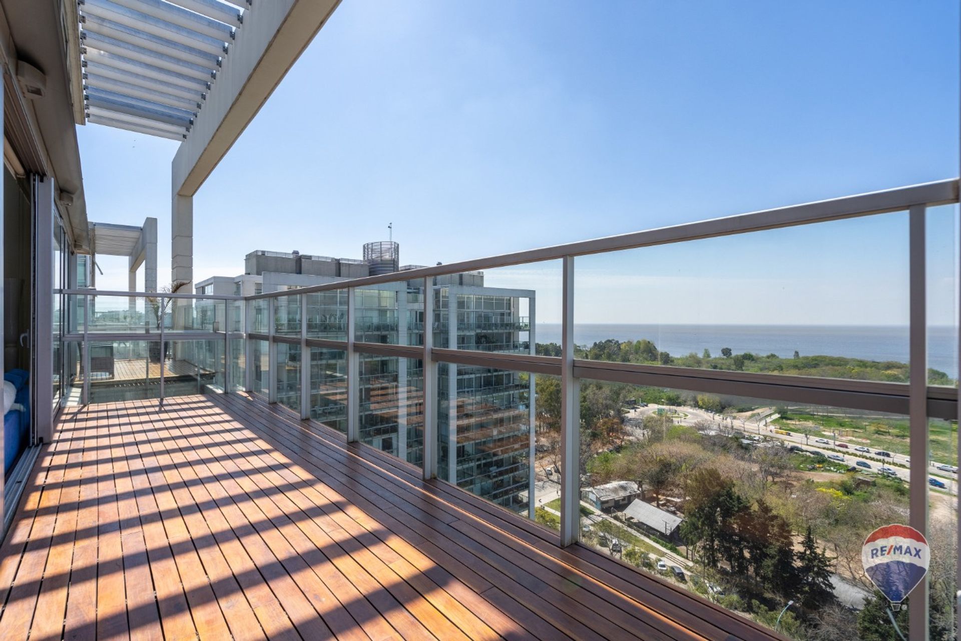 La enorme terraza, cerrada parcialmente con vidriado automático, alberga una parrilla y una espectacular piscina propia, rodeada de exquisita jardinería que realza la sensación de resort privado.