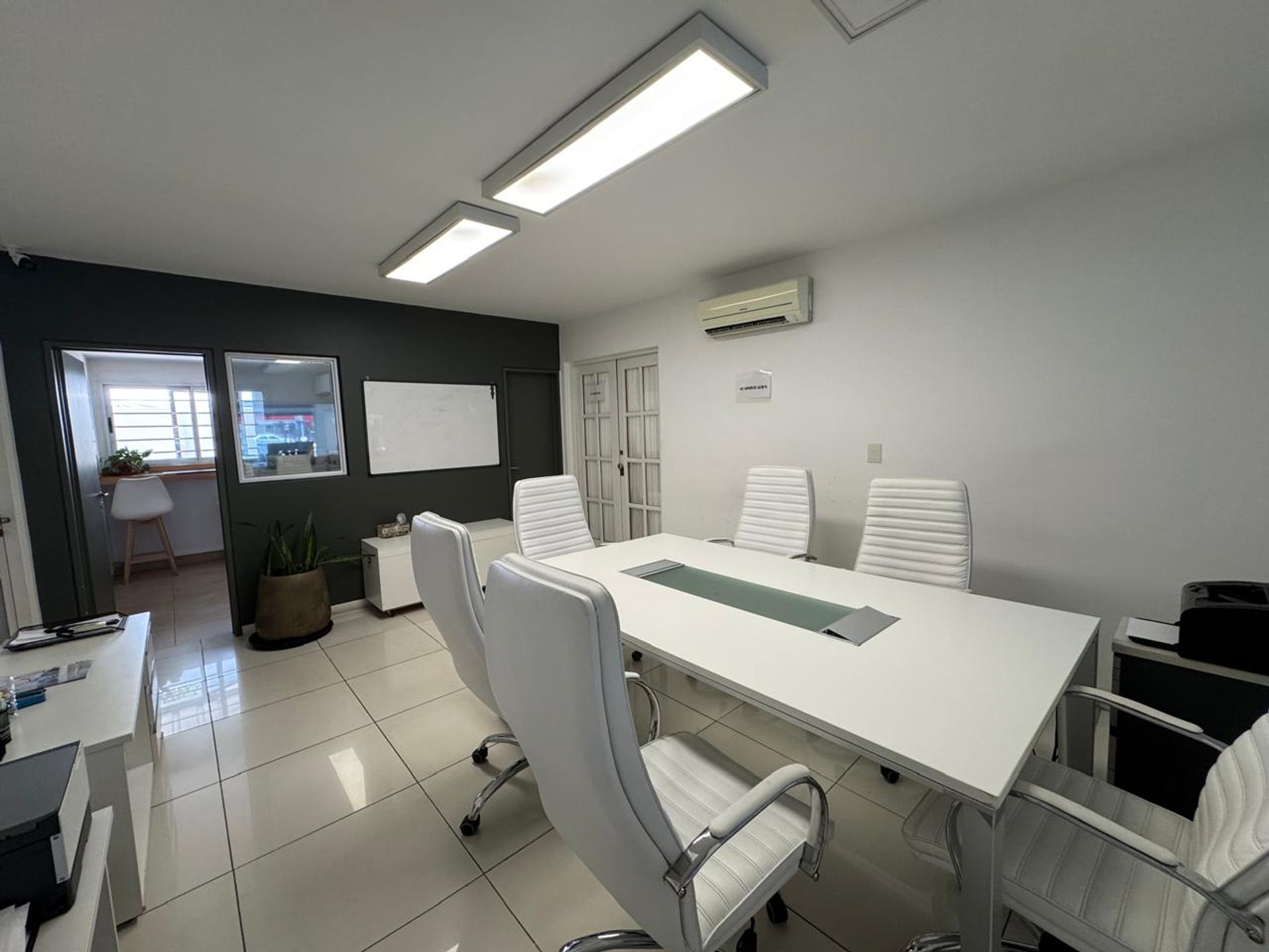 El local comercial, refaccionado en 2009, cuenta con un frente vidriado y un amplio showroom de 7,50 x 5,50 metros, ideal para exhibir productos. A su lado se ubican tres oficinas: una de 6 x 4 metros, pensada como sala de reuniones o coworking; otra oficina principal con baño privado; y una oficina de medidas estándar con una sala de reuniones adicional. Todas las áreas están equipadas con aire acondicionado tipo split, pisos y techos nuevos, lo que las hace listas para usar sin necesidad de realizar nuevas refacciones. Además, el local incluye una kitchenette, tres baños y, en el fondo del lote, un depósito o espacio de trabajo de 10 x 3 metros, con aire acondicionado, luminarias, termotanque eléctrico, agua y desagüe.