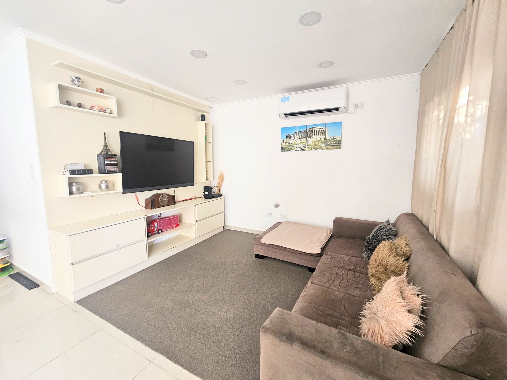 Dos habitaciones espaciosas cuentan con placards empotrados, mientras que el baño completo incluye bañera. En la planta superior se ubica una suite con baño privado y un amplio escritorio, aprovechando las grandes dimensiones del cuarto.