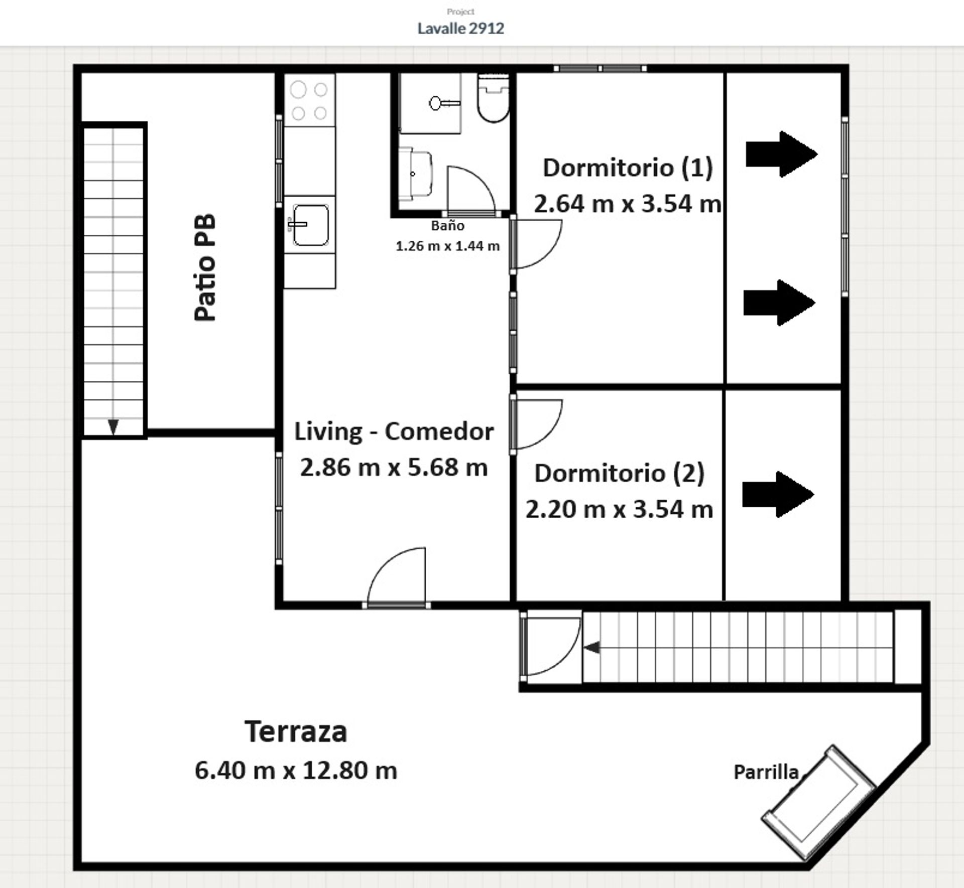 La terraza, accesible desde el living, alberga la unidad complementaria. Esta cuenta con una cocina integrada al amplio living comedor, un dormitorio amplio con escritorio y placard, y un baño completo. Además, dispone de un altillo o baulera que puede convertirse en un segundo dormitorio, según los planos disponibles.