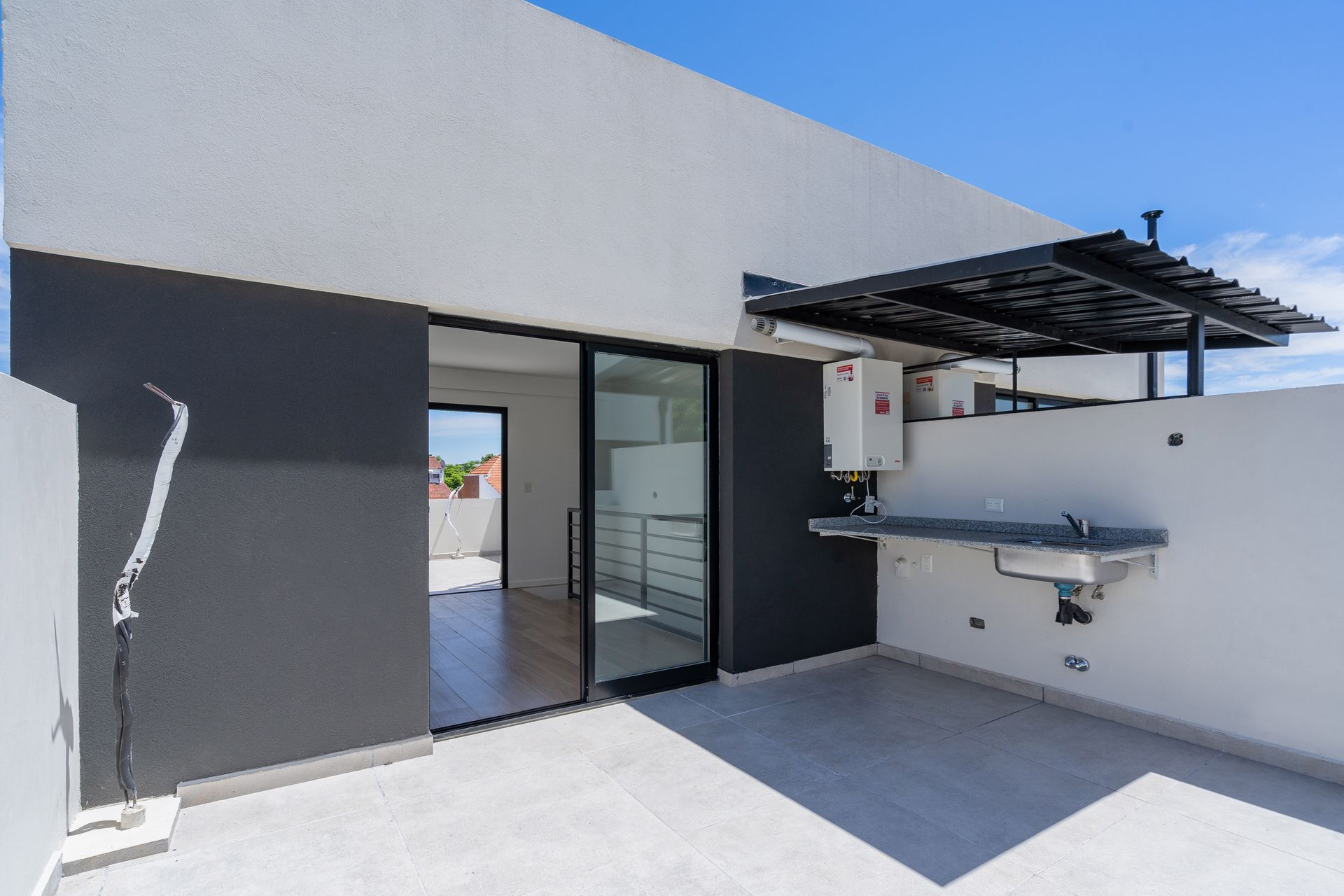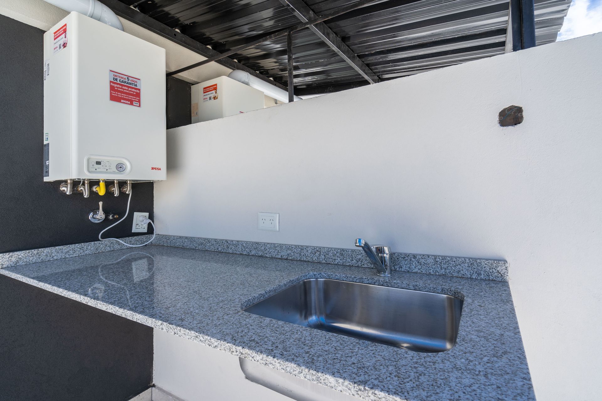 Los artefactos de cocina incluyen electrodomésticos a gas, mesa de trabajo en Silestone, lavamanos de acero inoxidable y grifería de marca FV. La preinstalación para aire acondicionado por splits permite una climatización cómoda en todas las estancias. El sistema de calefacción y agua caliente se gestiona mediante radiadores y una caldera dual a gas, asegurando confort en cualquier época del año.