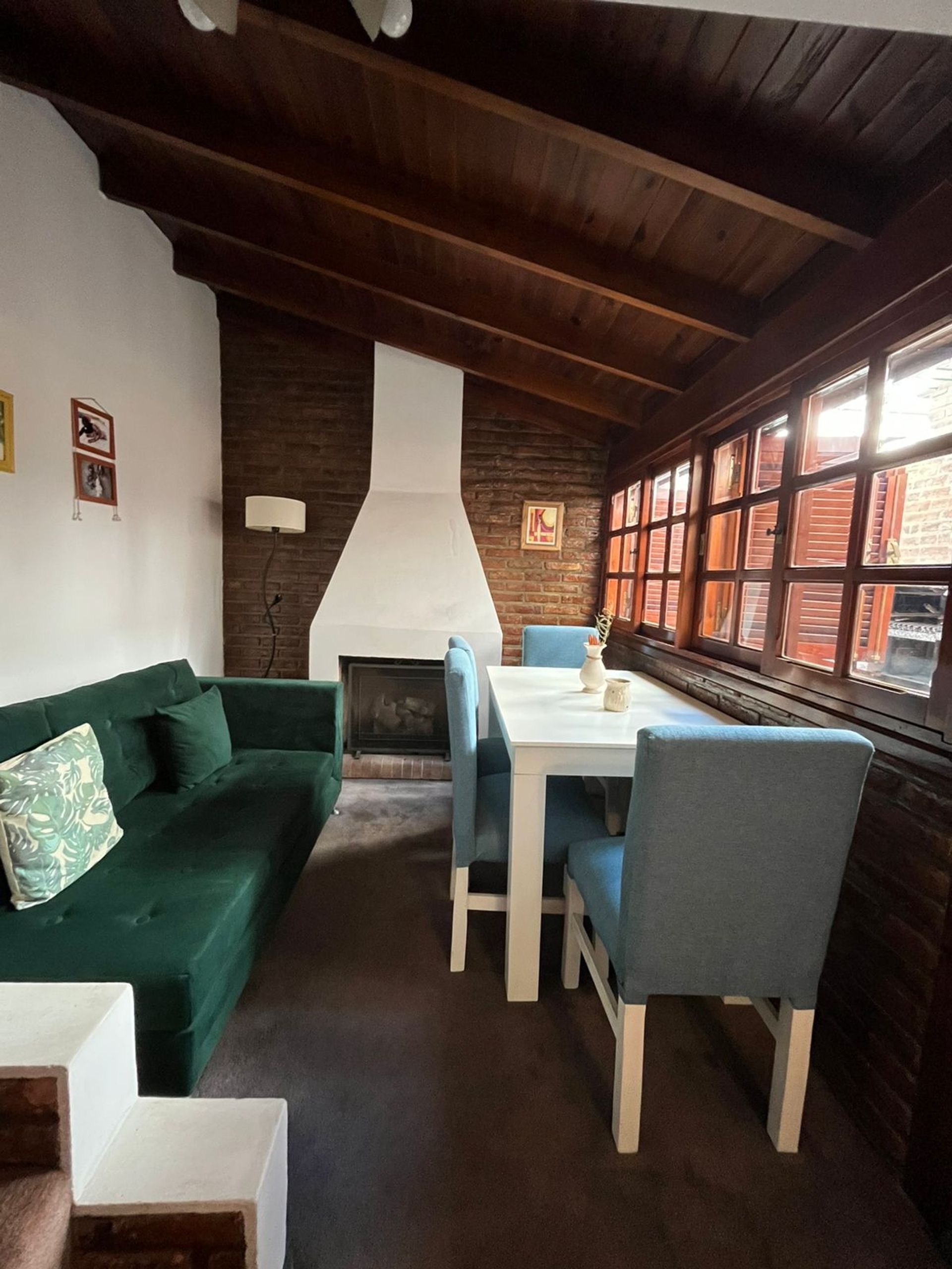 En el piso térreo se ubica una cocina amplia con un amplio espacio para muebles de almacenamiento. El baño completo, con bañera y extractor, está convenientemente ubicado para el uso de los residentes. El living, de gran extensión, se conecta a la cocina mediante una arcada y se abre a través de puertas correderas de vidrio que llevan al patio. En esta zona se encuentra una estufa a gas estilo hogar, creando un ambiente cálido y acogedor. El patio cuenta con parrilla, mesa y una pequeña pileta, ideal para reuniones y momentos de relajación. Además, se dispone de una garita para el termotanque, garantizando la comodidad y el confort térmico.