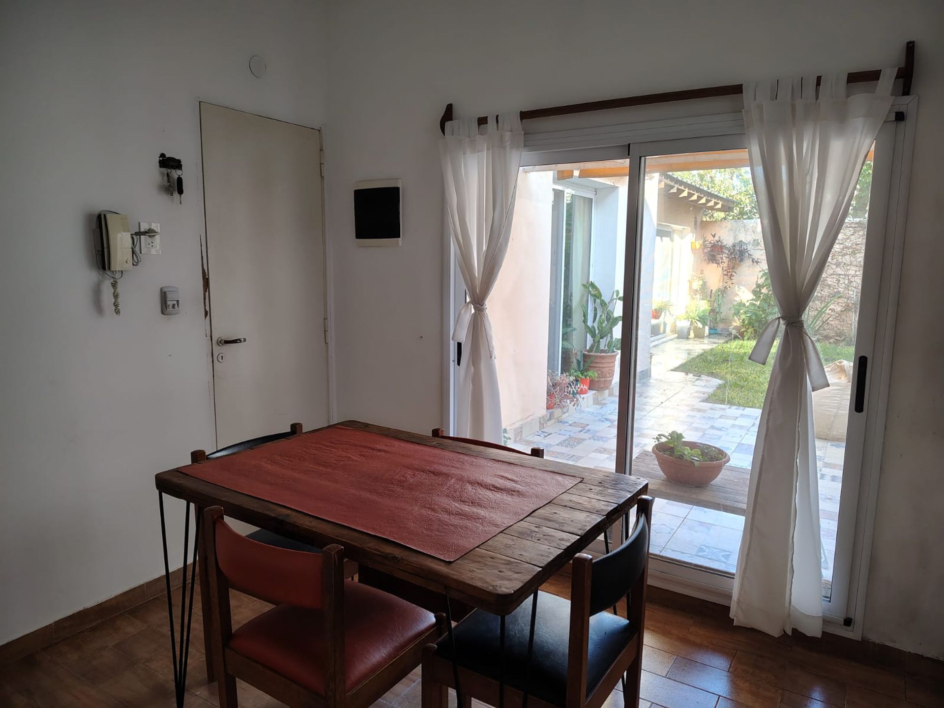 El dormitorio principal presenta piso de parquet y un enorme placard que ocupa una pared de piso a techo, ofreciendo un amplio espacio de almacenamiento. El segundo dormitorio, actualmente utilizado como estudio, dispone de piso cerámico y puerta balcón que conduce al jardín, brindando un ambiente tranquilo y funcional.