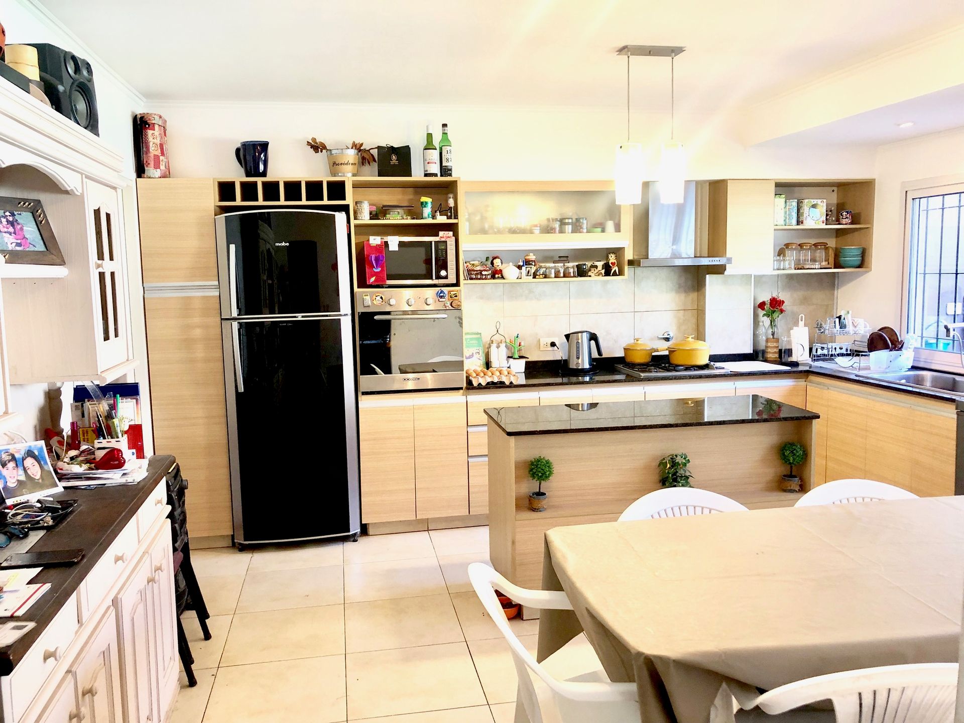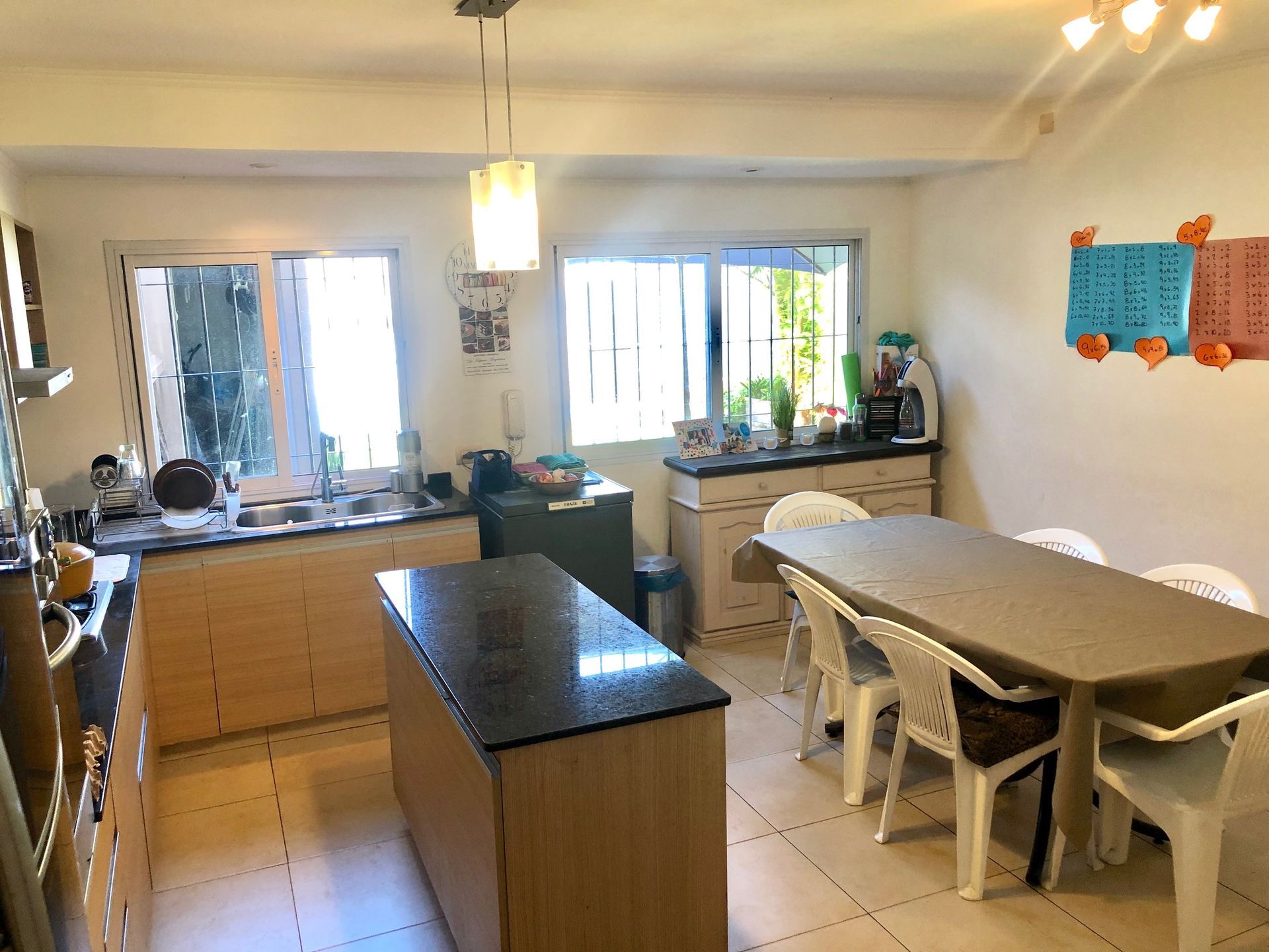 La vivienda, de cinco ambientes, combina funcionalidad y confort. Con tres dormitorios, dos baños completos y un toilette, la distribución favorece la convivencia y la privacidad. La planta baja incluye un baño adicional y un cálido living que se abre a un escritorio y a una cocina totalmente equipada, con mesada, barra desayunadora y abundantes zonas de almacenamiento.