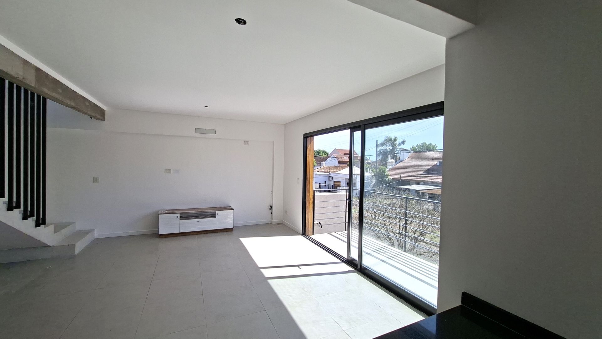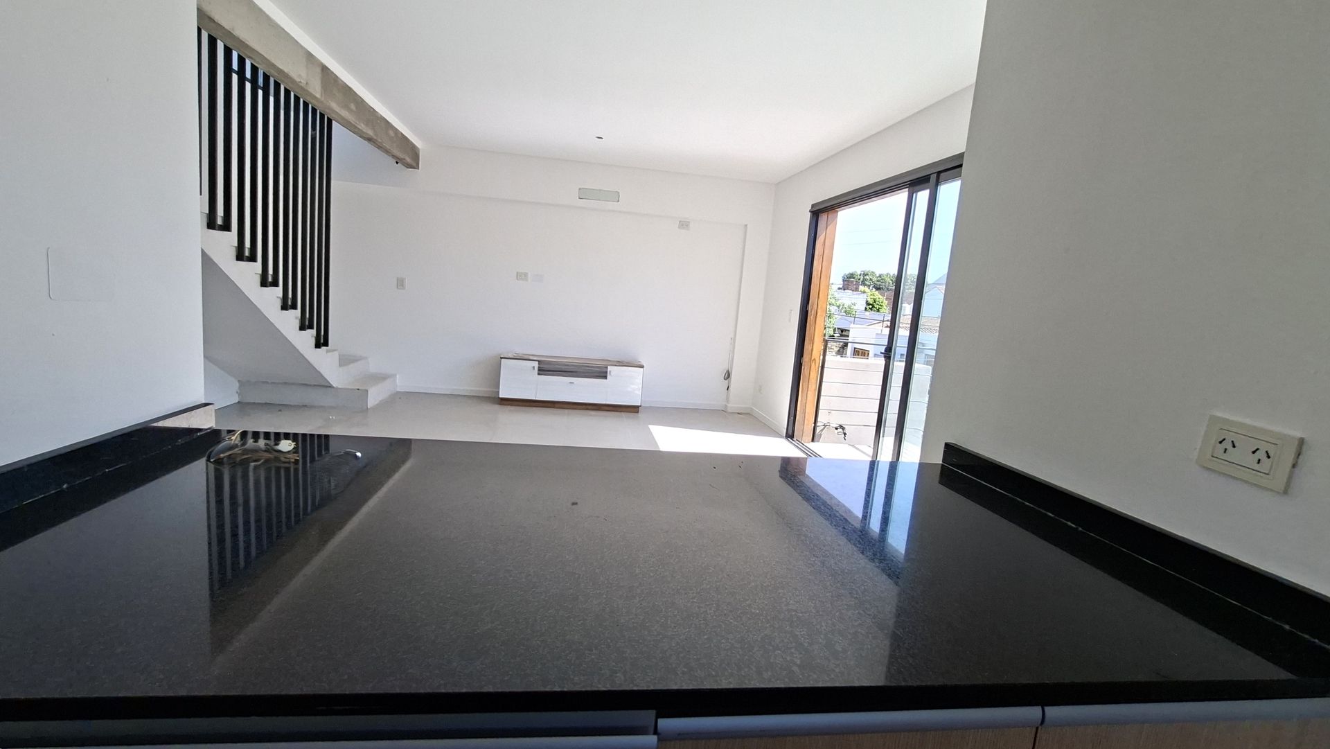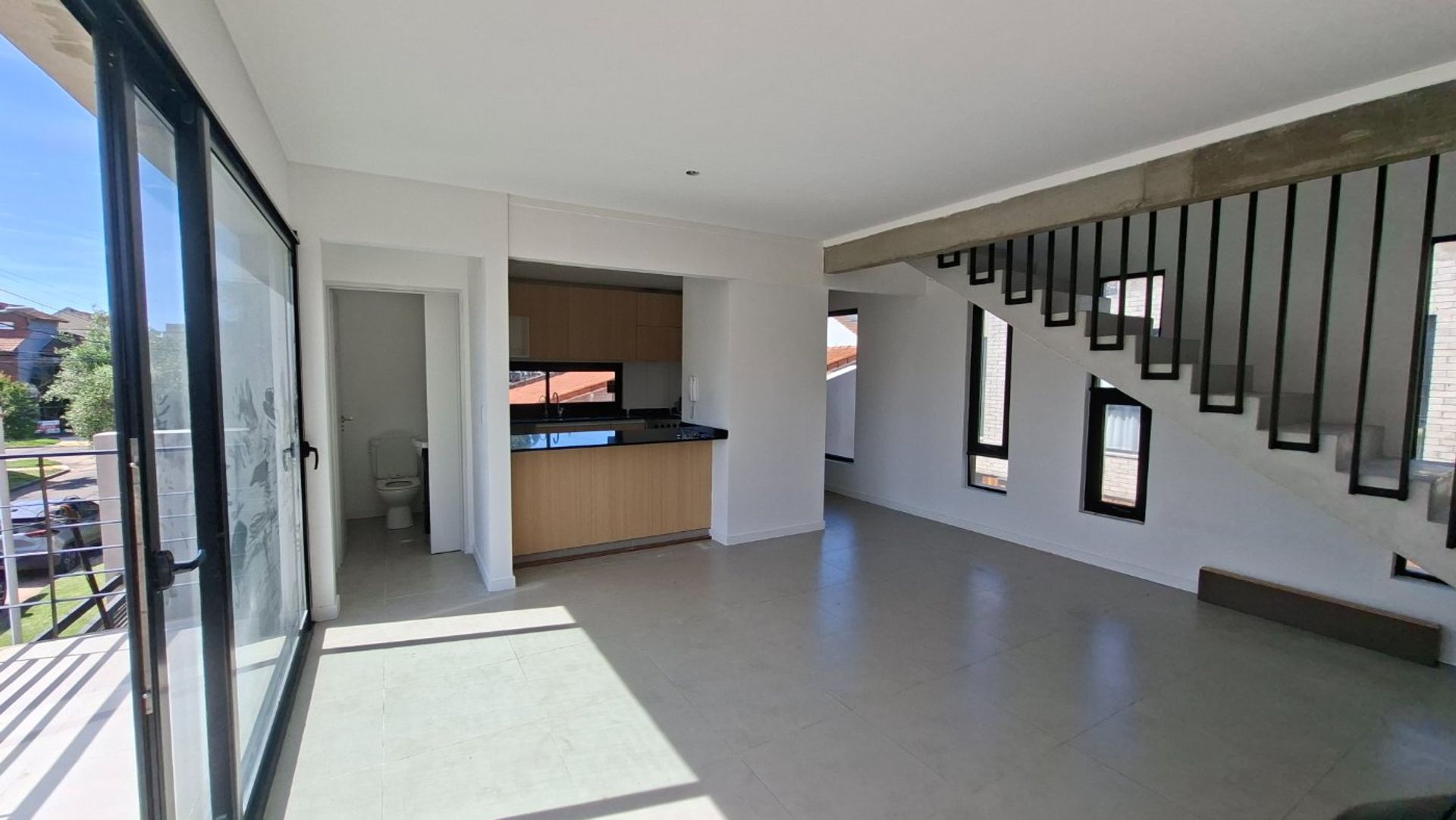 En la planta principal se desarrolla un espacio social cómodo y luminoso, donde el living‑comedor se integra de forma armoniosa con la cocina mediante una isla funcional. La cocina cuenta con muebles bajo mesada, alacenas y espacio previsto para heladera, lavarropas o lavavajillas. También dispone de un toilette de recepción y un balcón amplio orientado al este, que asegura una excelente luz natural desde las primeras horas del día.