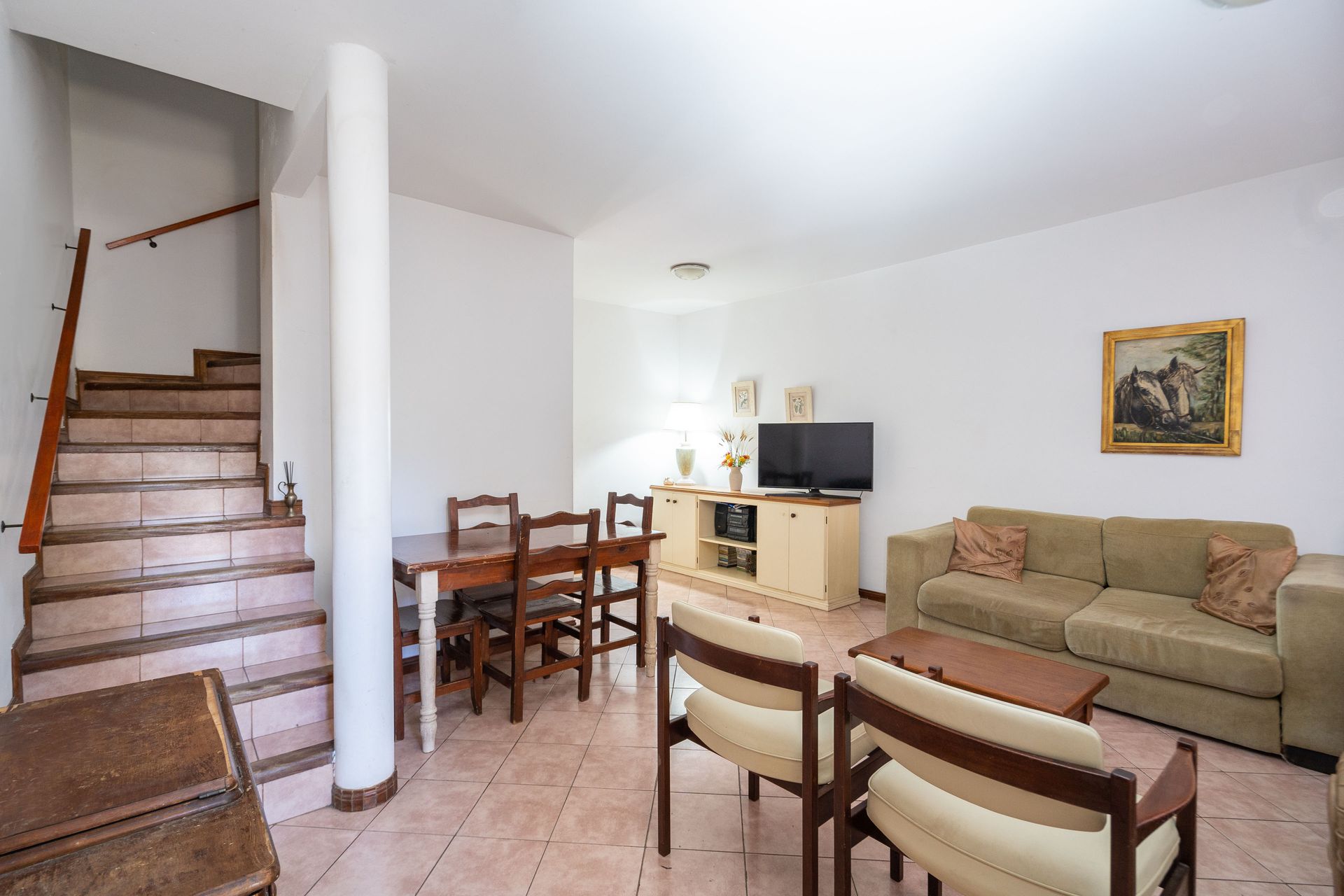La planta alta alberga tres dormitorios bien distribuidos y un baño completo, proporcionando espacio y privacidad para todos los miembros de la familia.