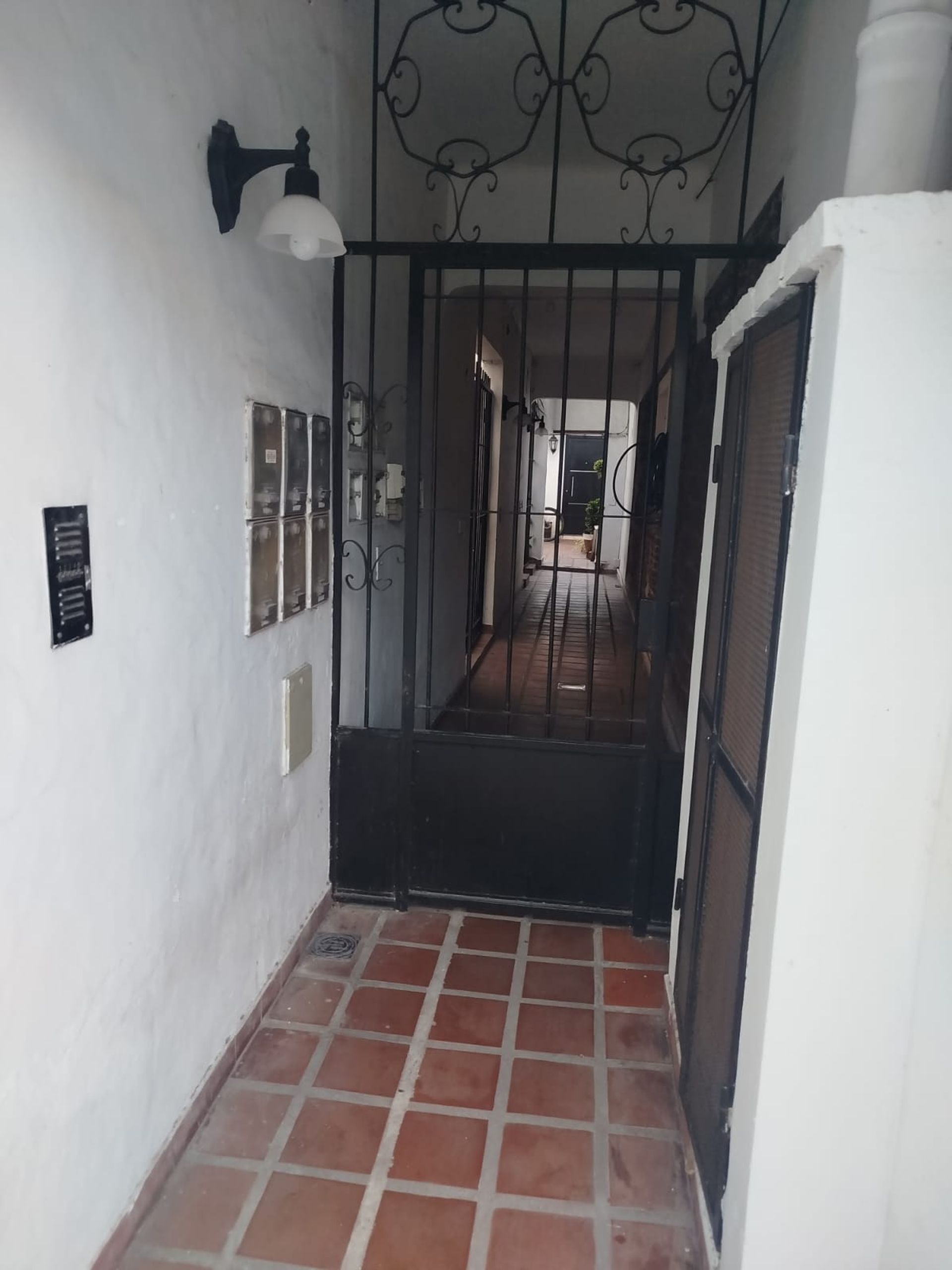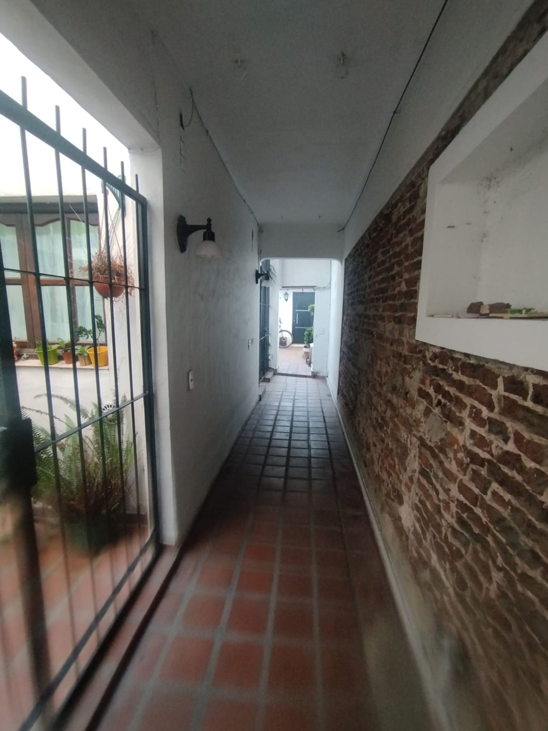 El ingreso a la propiedad se realiza a través de un pasillo común de gran calidez y excelente mantenimiento. Su diseño combina lo rústico y lo moderno, con una pared de ladrillo visto que aporta personalidad y un estilo industrial/rústico muy buscado. El recorrido está equipado con luminarias de pared tipo farol que garantizan seguridad y una ambientación acogedora por la noche. Los techos son altos y pintados de blanco, creando una sensación de amplitud. Los pisos son baldosas cerámicas rojas en perfecto estado, resistentes y fáciles de mantener. El pasillo semicubierto y bien cuidado ofrece una transición agradable y silenciosa desde la calle hacia la unidad, funcionando como un pulmón de retiro frente al ruido urbano.