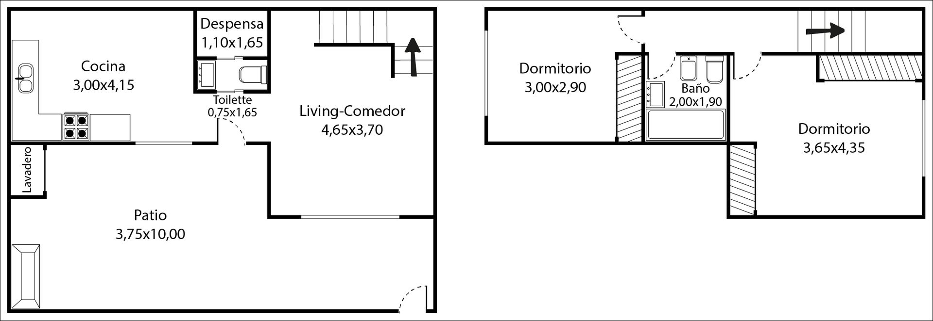En la planta alta se ubican dos dormitorios amplios, ambos con placard, un baño completo con ventilación natural y una buhardilla de aproximadamente 5 m² en altillo, sumando espacio de guardado adicional.