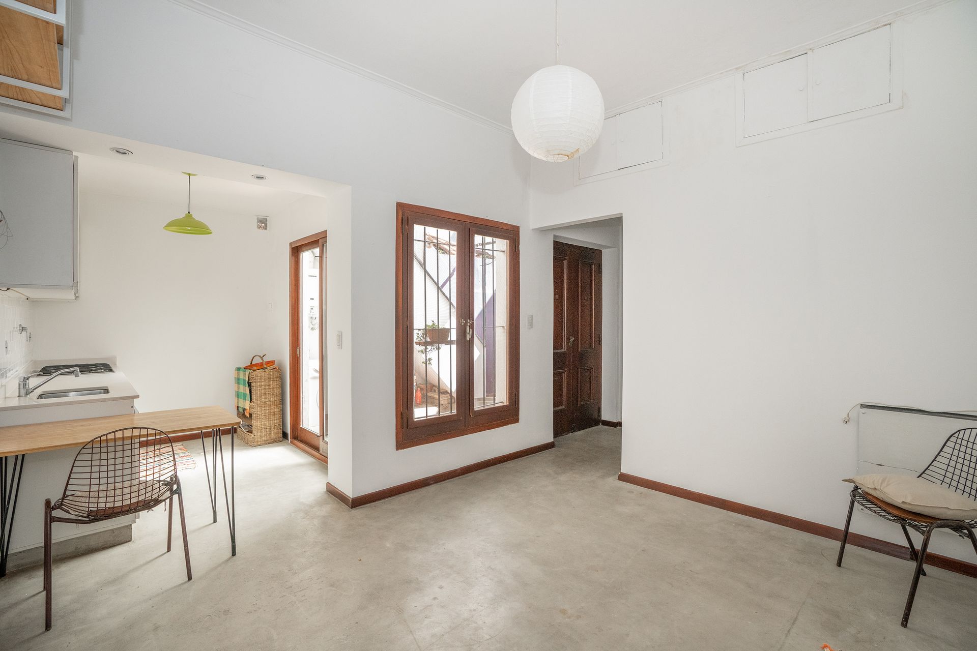 Al ingresar se accede por un pasillo que conduce a un patio privado con lavadero semi cubierto, ideal para la organización del hogar. El living comedor, con piso de cemento alisado, se integra con la cocina, y ambos espacios cuentan con ventanales de cerramientos modernos que ofrecen una vista directa al patio, permitiendo una abundante entrada de luz natural.