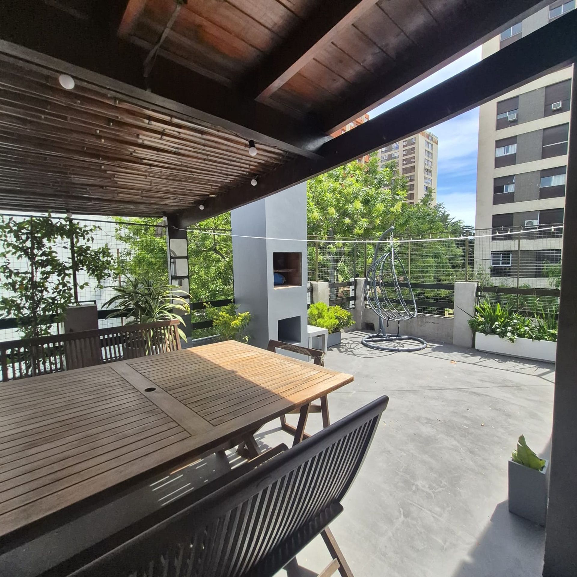 La terraza de 36 m² dispone de parrilla y pérgola de madera y cañas, con pisos impermeabilizados recientemente. El metraje total difiere del registrado en la escritura debido a las mejoras realizadas; no se dispone de planos actualizados.