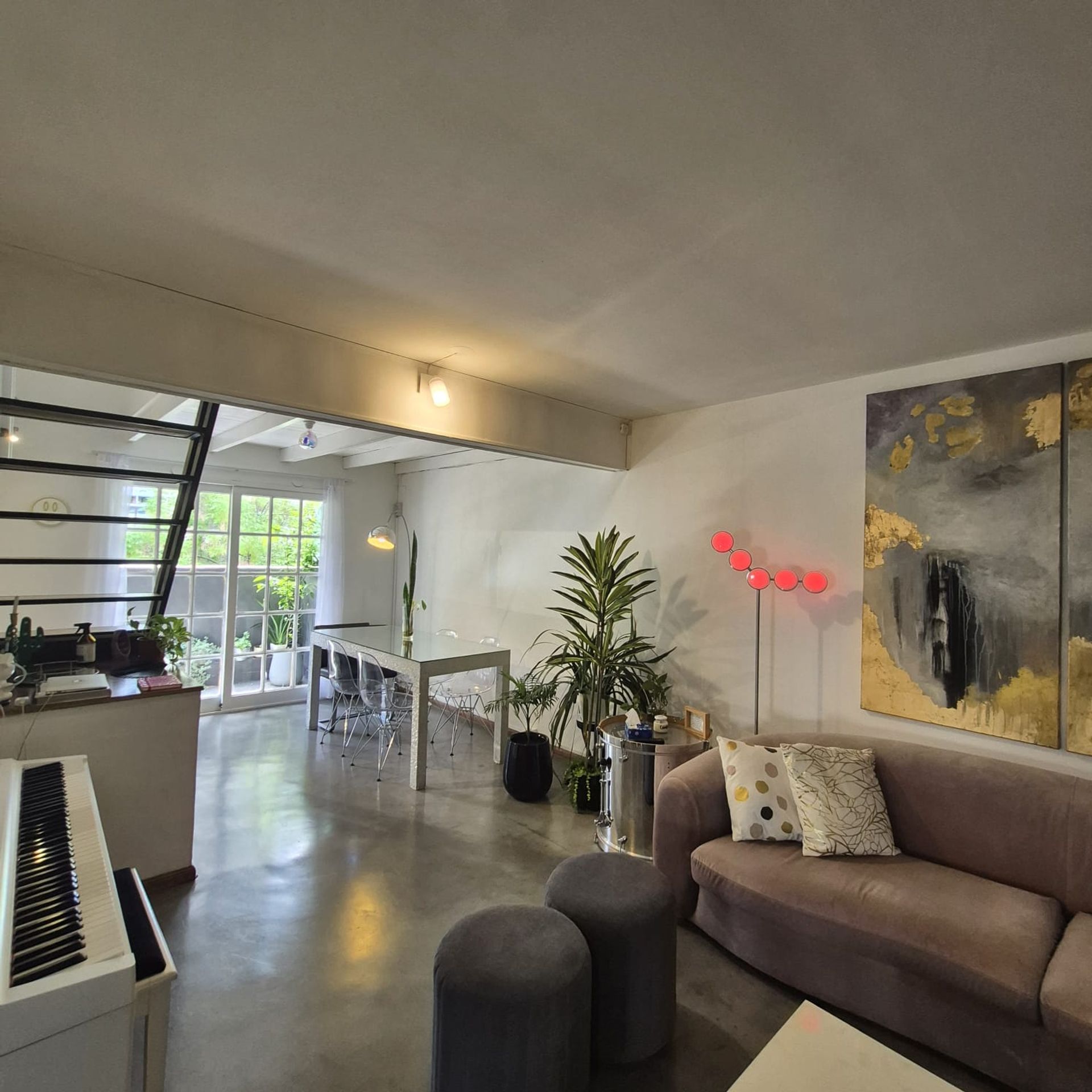 Casa de estilo moderno, completamente renovada hace diez años. Situada en un primer piso accesible por escalera, ofrece un amplio living de casi 30 m² con luz abundante, pisos de cemento alisado, estufa de tiro balanceado nueva y acceso directo a balcón y lavadero independiente semicubierto.
