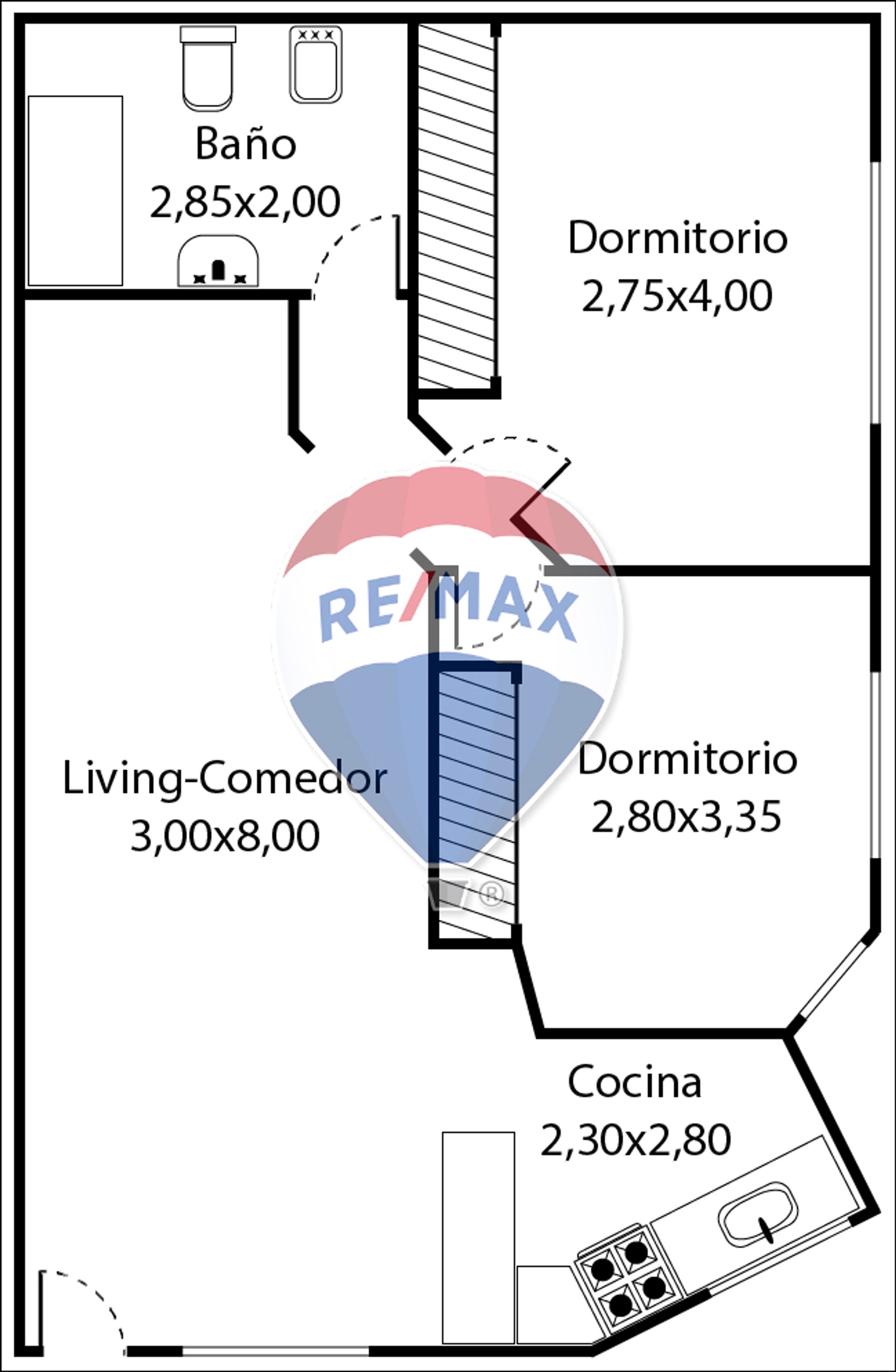 Esta planta baja cuenta con dos dormitorios con amplios placards, una cocina amplia y muy bien equipada que incluye barra, y un baño completo. El espacio se caracteriza por su luminosidad y versatilidad, ideal tanto para vivienda como para oficina o emprendimiento.