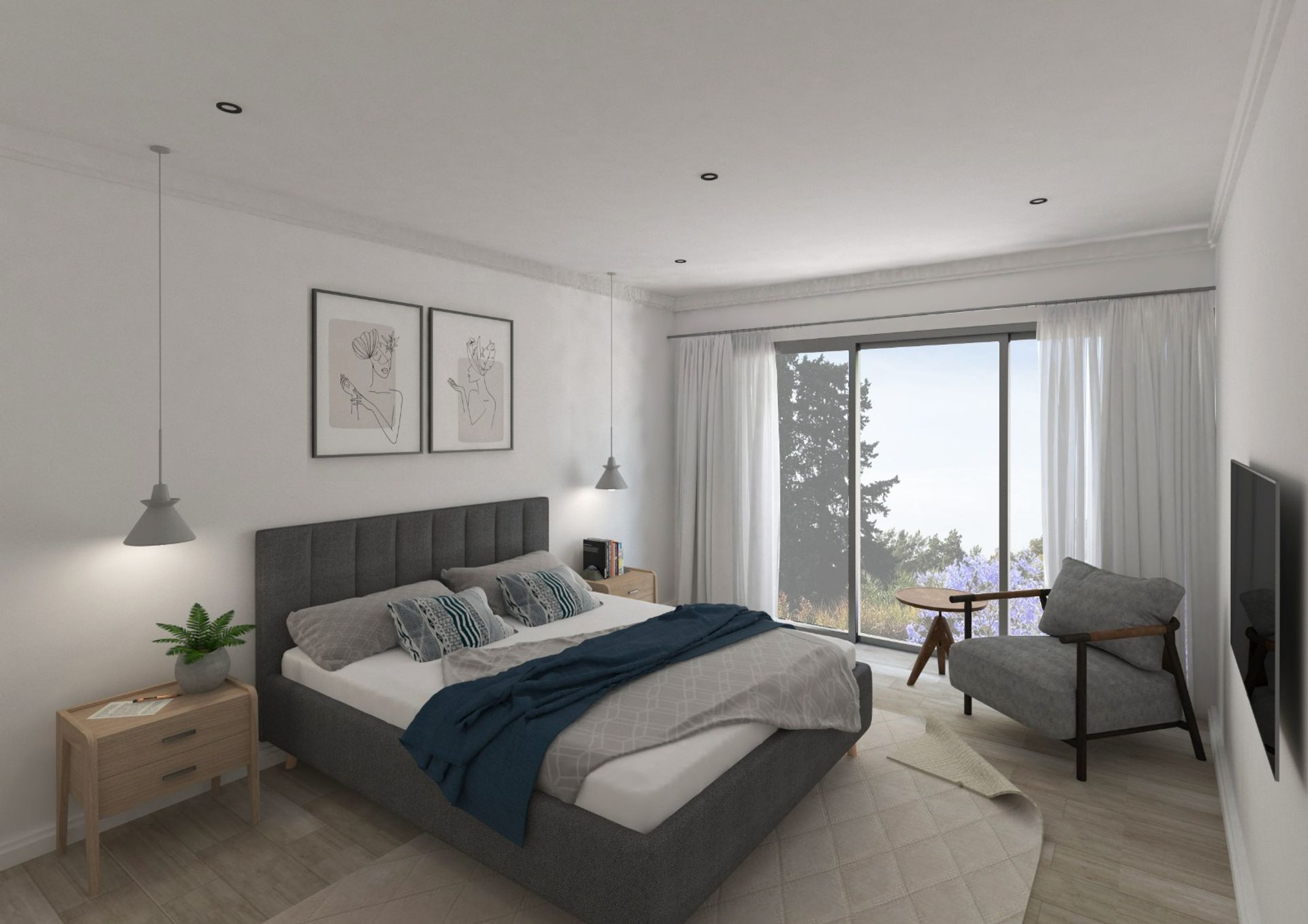 El primer piso alberga dos dormitorios con placard y grandes ventanales que ofrecen vistas amplias y una atmósfera acogedora. Además, dispone de un baño completo con acabados de alta calidad.