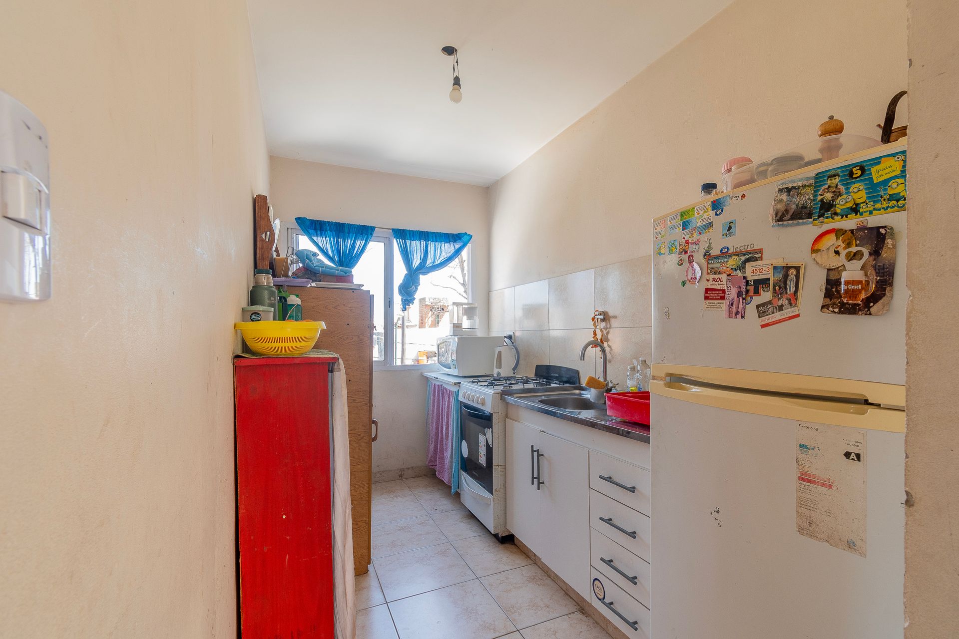 El segundo piso, accesible por escalera y con entrada independiente, alberga la segunda unidad. Un hall de distribución abre a un living-comedor que recibe abundante luz natural. La cocina, equipadacompleta, incluye muebles de almacenamiento y un comedor diario. Un dormitorio amplio, bien iluminado, comparte un baño completo con box de ducha, y un balcón frontal ofrece un espacio para la lavandería.