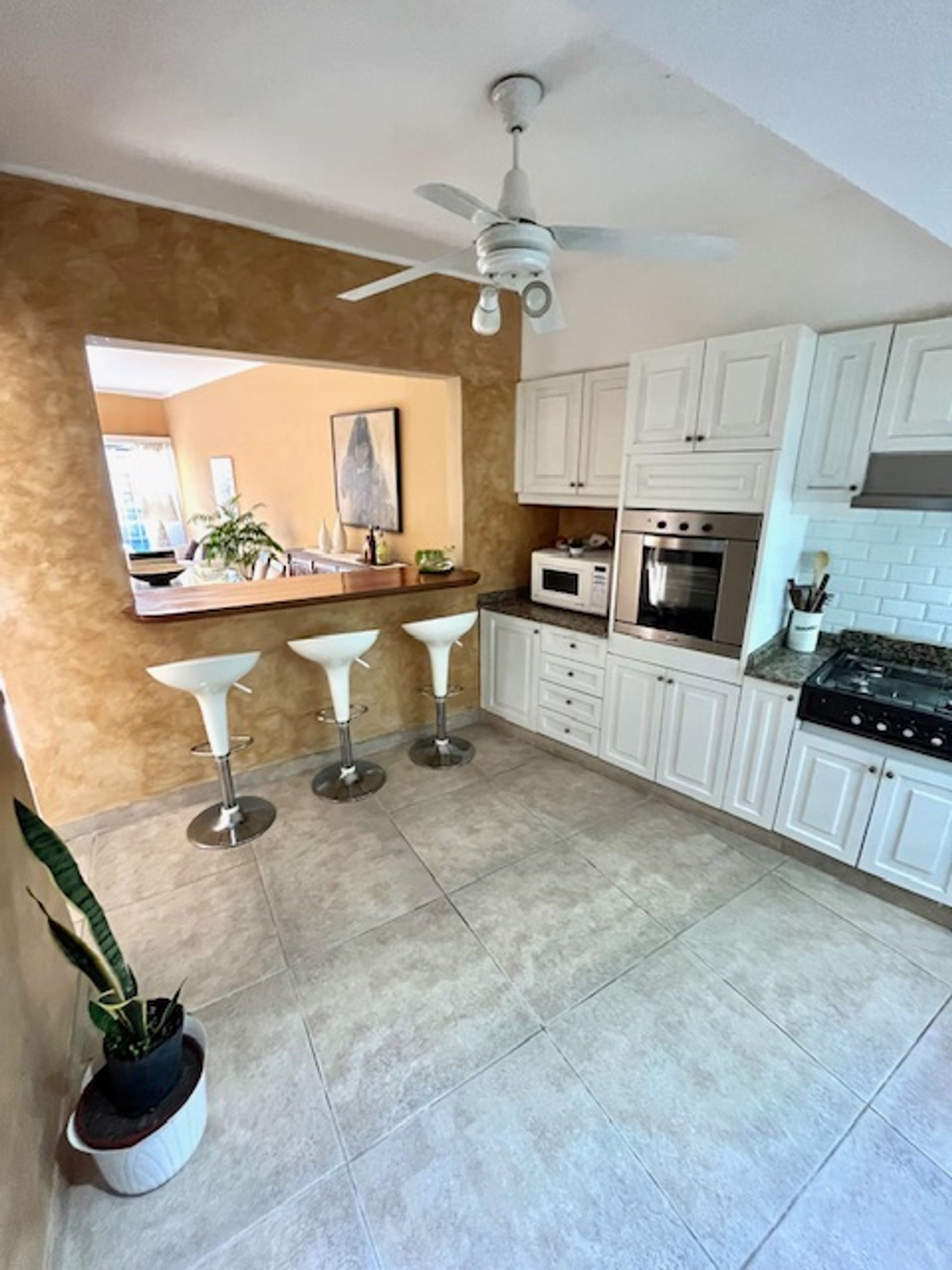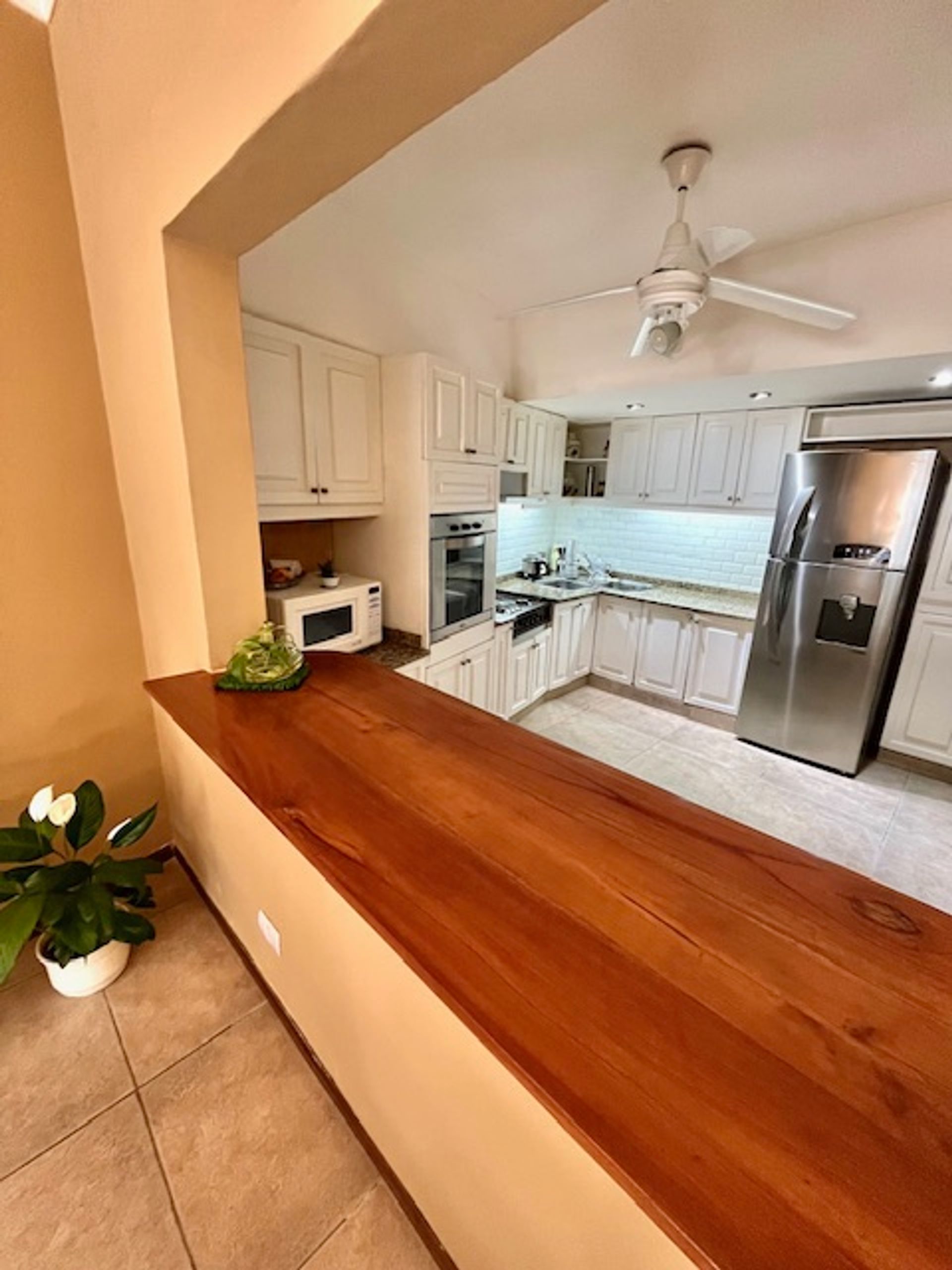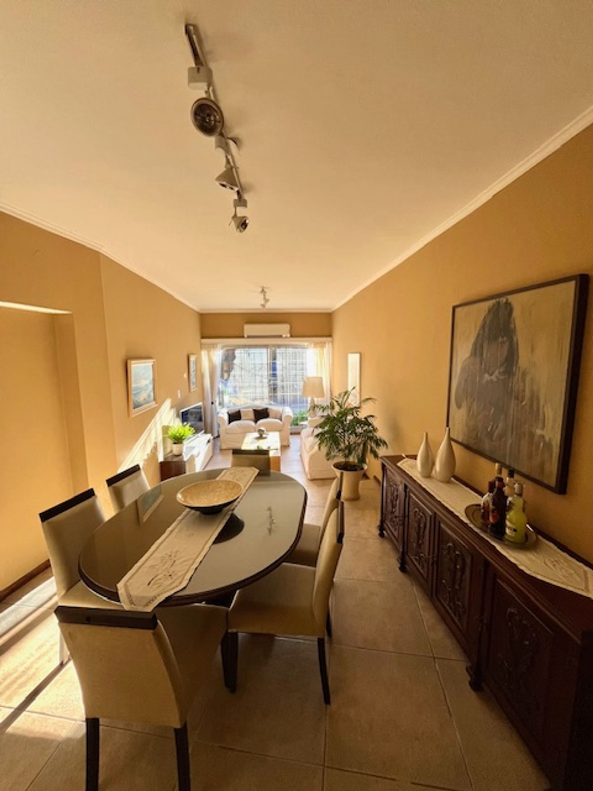 En la planta baja se encuentra un amplio hall de recepción que conduce a un living comedor con ventanal frontal, ofreciendo abundante luz natural. La cocina integrada dispone de barra desayunadora y la opción de comedor diario. Un pequeño patio cubierto y un baño completo remodelado completan el nivel. La cochera cuenta con portón automatizado.
