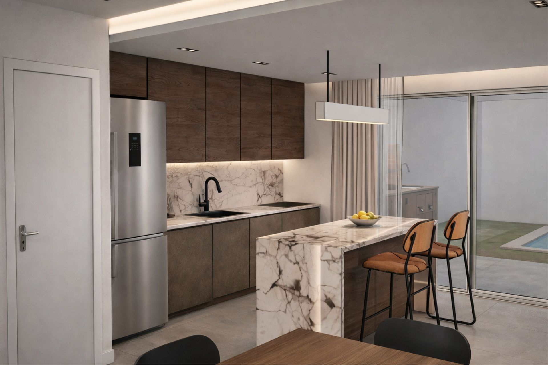La planta baja se abre con una cochera al frente que garantiza estacionamiento seguro y accesible. El amplio living comedor, con cocina integrada, crea un espacio acogedor y luminoso, perfecto para reuniones familiares o con amigos. Un toilette para visitas complementa la zona de entrada. En la parte trasera, un jardín con espacio para parrilla y una mesada de granito, junto con una bacha, permite disfrutar de reuniones al aire libre en cualquier época del año.