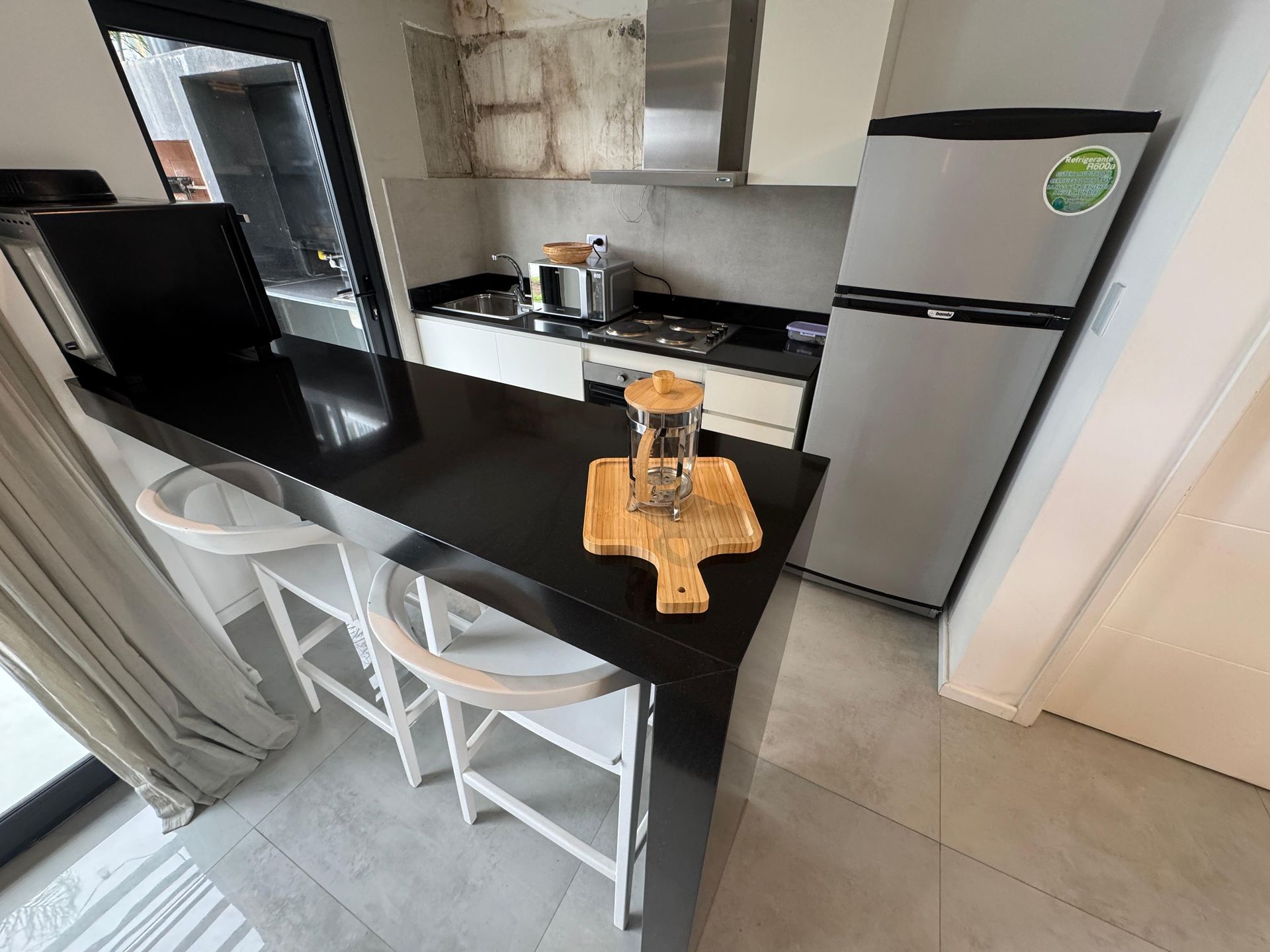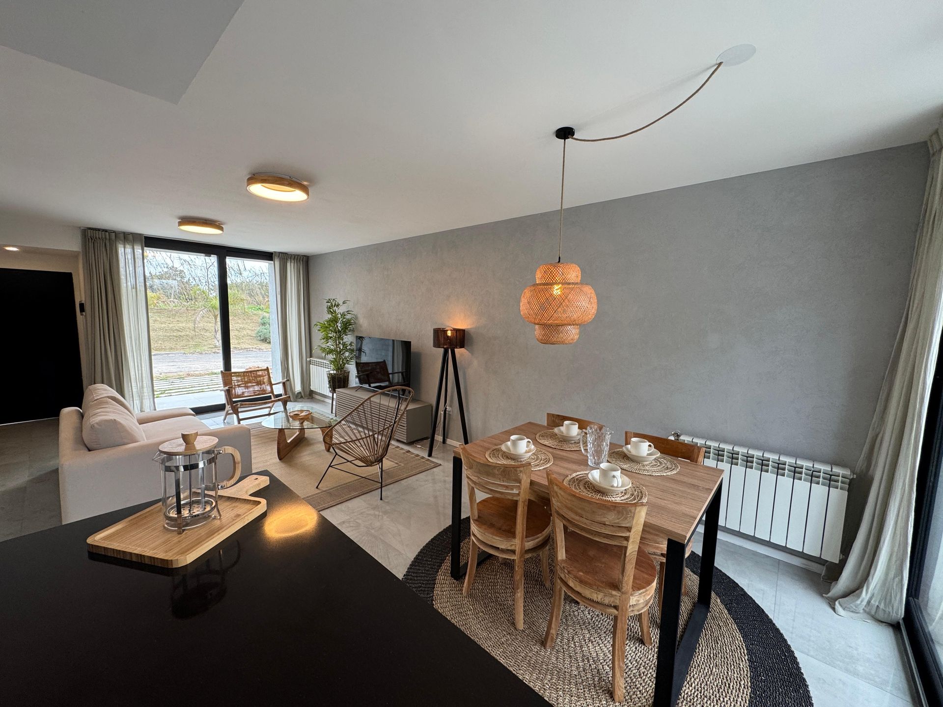 La vivienda se compone de cuatro ambientes, tres dormitorios, una toilette y una cocina integrada al salón-comedor. El diseño favorece la iluminación natural y la circulación fluida entre los espacios.
