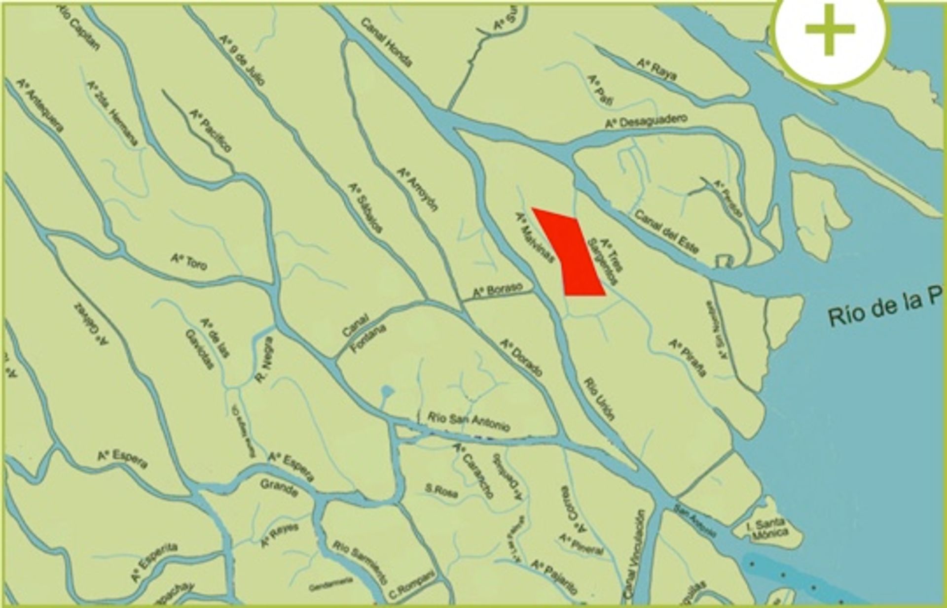 Lote número 41 frente al Arroyo Malvinas, ubicado en el conjunto Dos Ríos, cuenta con más de una hectárea y 75 metros de frente al río. Se encuentra a 45 minutos en tren desde la estación de Retiro y a 30 minutos en lancha desde Tigre, el inicio del Delta del Paraná.