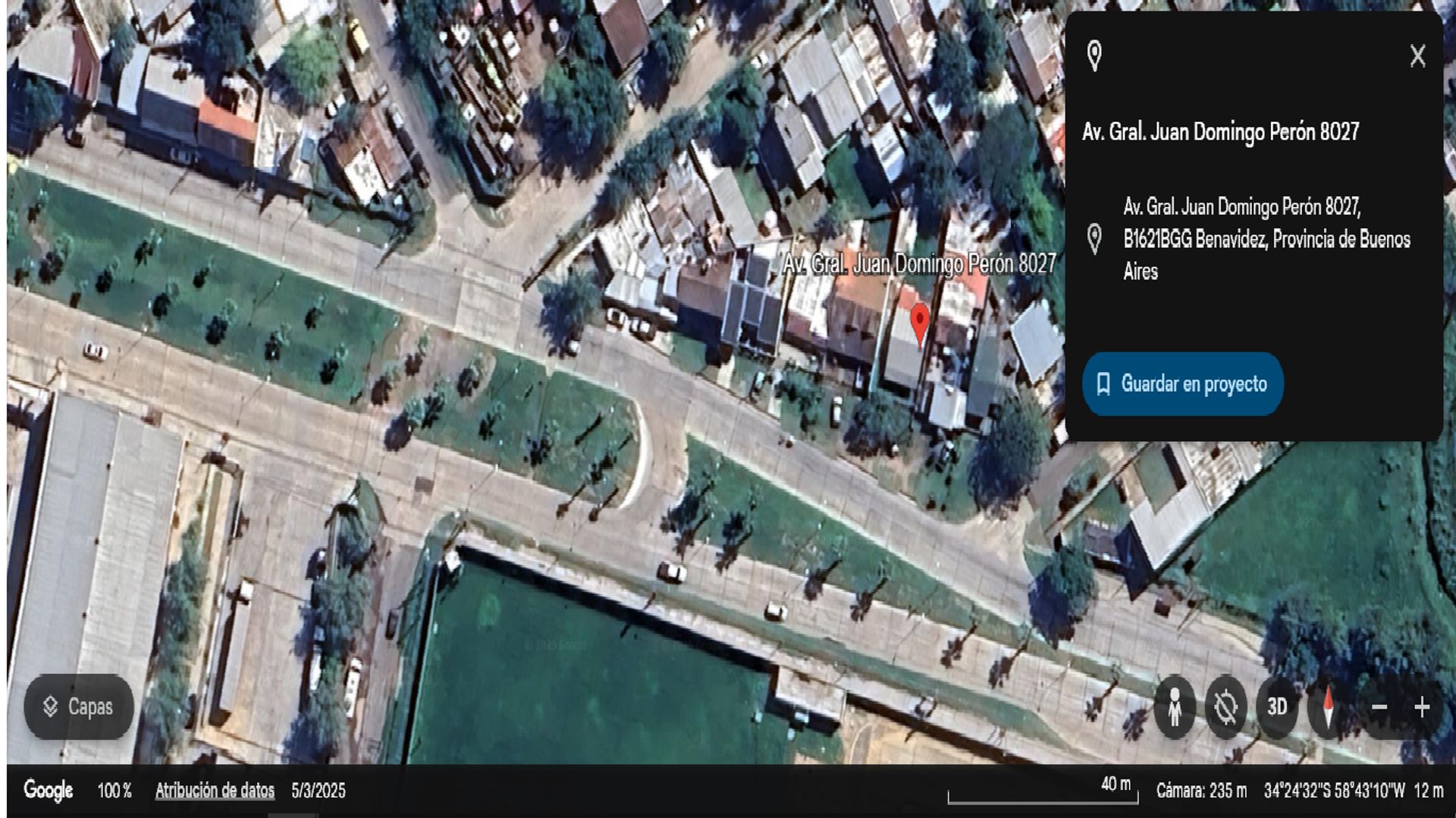 Benavídez, lote de 277 m² con frente amplio, entrada para 3 vehículos, galpón de almacenamiento, patio trasero y jardín frontal, servicios de luz y agua conectados.