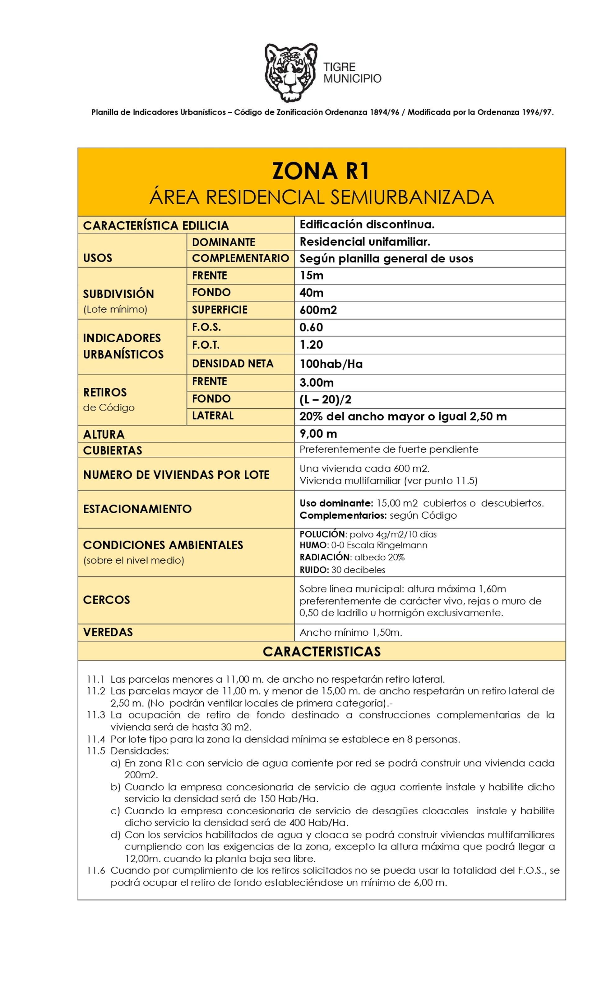 Partida 62.851 (Tigre), circunscripción 4, sección D, quinta 65, parcela 2, zonificación R1. Fot 1.20, fos 0.60. Sujeto a estudio de pre‑factibilidad.