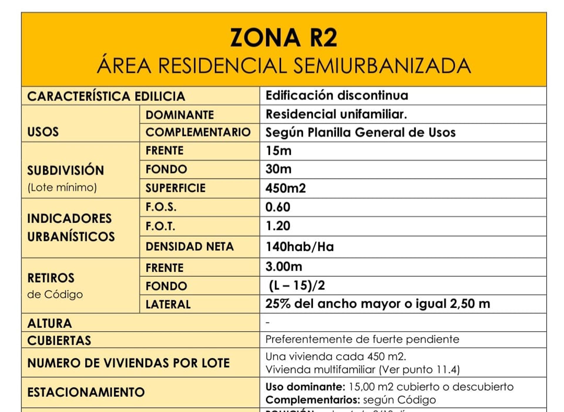 Zonificado como R2g Residencial, con FOT de 0,60 m y FOS de 1,20 m, lo que permite una planificación de obra acorde a las normas locales.