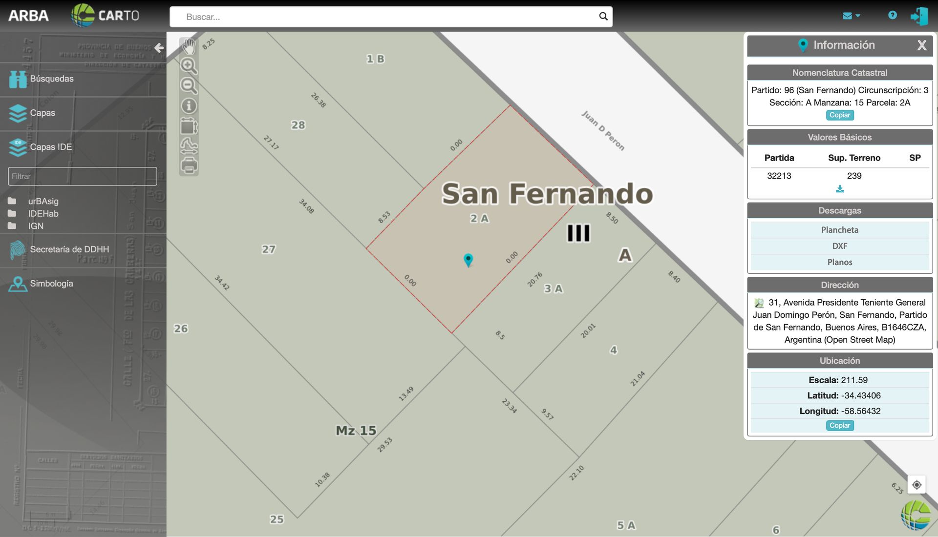 Terreno de 239 m² ubicado en la Avenida Presidente Perón, zona C2 de San Fernando. Con un frente de 11,55 m y una profundidad de 20,55 m, permite la construcción de hasta 8 unidades de 2 ambientes, cada una con un mínimo de 50 m².